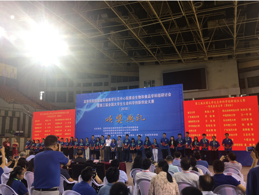由高等学校生物科学类专业教学指导委员会、高等学校国家级实验教学示范中心联席会、《高校生物学教学研究》编辑部联合主办,由江苏师范大学、吉林大学生物国家级实验教学示范中心、吉林省生物化学与分子生物学会联合承办的第三届全国大学生生命科学创新创业大赛于201887-9日在江苏师范大学圆满落下帷幕。