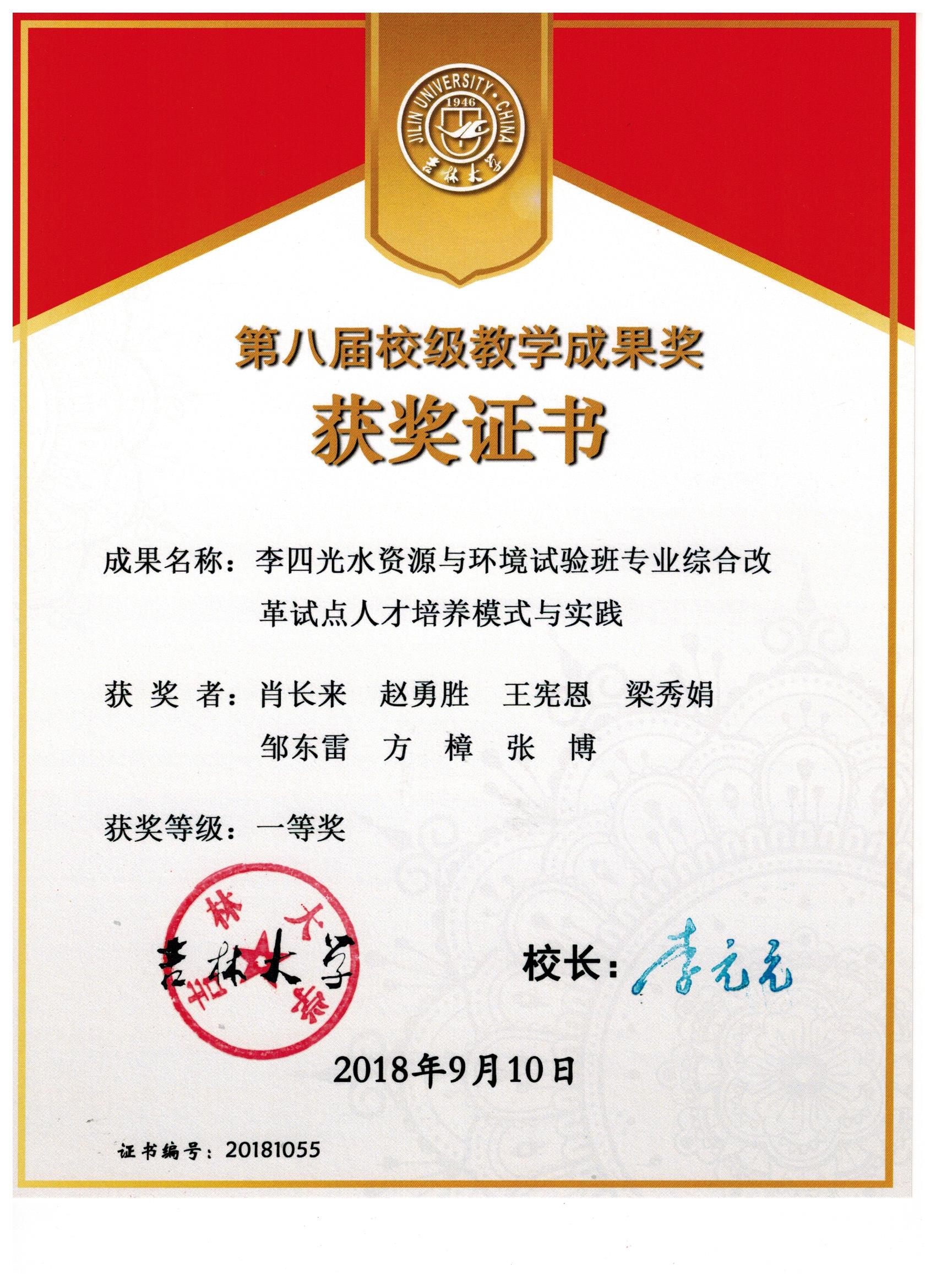 成果名称:李四光水资源与环境试验班专业综合改革试点人才培养模式与实践