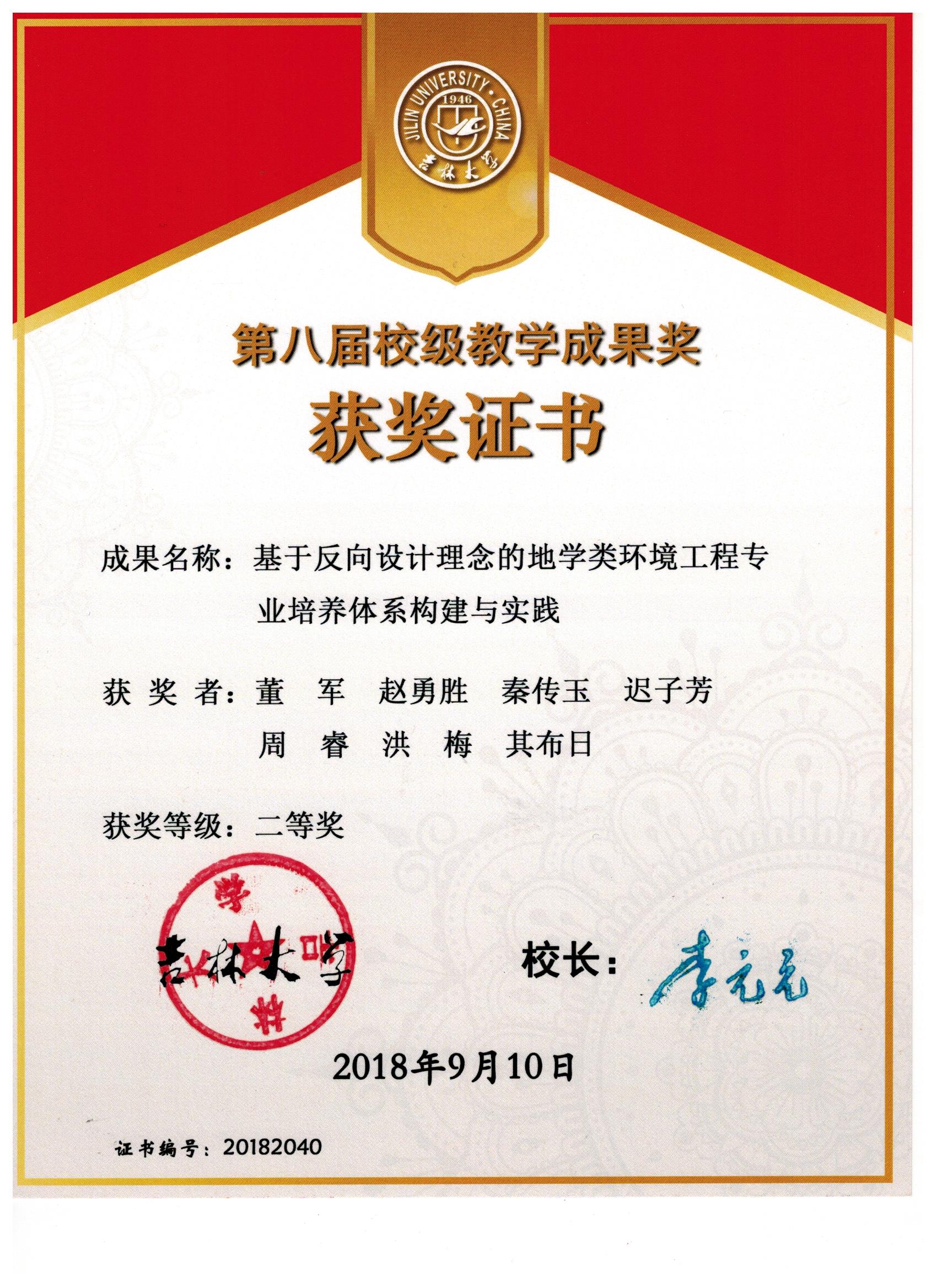 成果名称:基于反向设计理念的地学类环境工程专业培养体系构建与实践