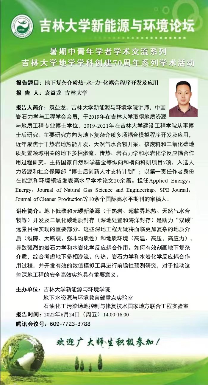 新葡萄8883官网AMG论坛-暑期中青年学者学术交流系列 吉林大学地学学科创建70周年系列学术活动(之一)