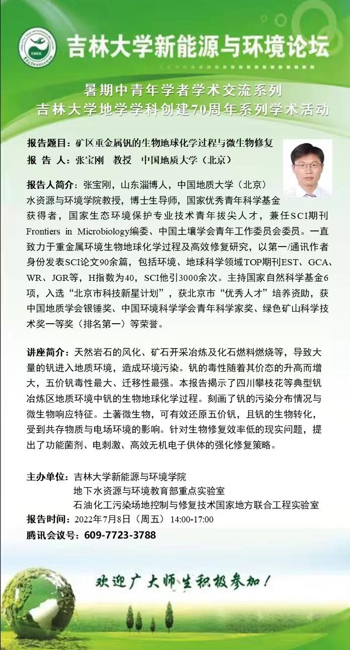新葡萄8883官网AMG论坛-暑期中青年学者学术交流系列 吉林大学地学学科创建70周年系列学术活动(之二)