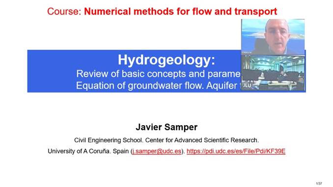 为深化研究生培养模式改革,满足疫情常态化情况下课程教学的客观需求,加强研究生课程建设,提升研究生课程的教学水平和教学质量,开拓培养研究生的国际化视野,应新葡萄8883官网AMG许天福教授、冯波教授的邀请,西班牙拉科鲁尼亚大学 (Universidade da Coruña) Javier Samper Calvete教授为新葡萄8883官网AMG2020级研究生举办16场主题为流体运移数值方法 (Numerical Methods for Flow and Transport)的线上讲座。