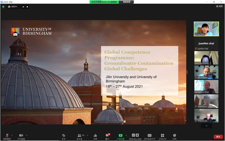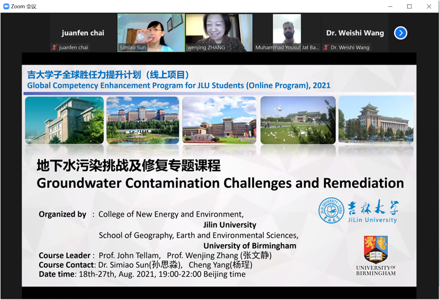 为充分利用全球优质教育资源,推动人才培养国际化,提升学生全球胜任力,在 “吉大学子全球胜任力提升计划”支持下,新葡萄8883官网AMG与伯明翰大学于2021年8月18-2021年10月13日联合举办“地下水污染挑战及修复专题课程”的线上培训。
