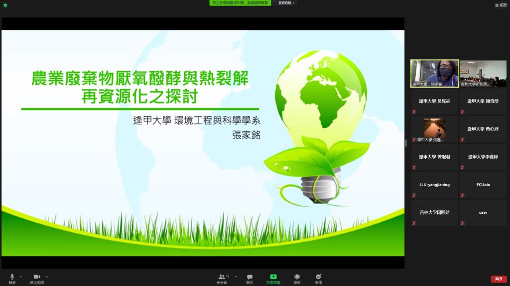 2021年11月30日新葡萄8883官网AMG承办的吉林大学与逢甲大学研究生在线工作坊—“能源与环境”研讨会通过线上平台成功举办。本次工作坊旨在面向环境、水资源以及新能源领域的前沿,探索共同关注的研究方向,增进与台湾逢甲大学相关领域的学术交流与科研合作,助推学院一流学科建设。逢甲大学环境工程与科学学系的吕晃志副教授、赖奇厚副教授,新葡萄8883官网AMG外事副院长董军教授、环境工程系副主任吕聪副教授,和两校8名硕、博士研究生参会。