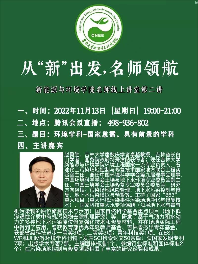 为了更好的解答同学们心中的疑惑,让同学们对自己的职业规划和努力方向有更清晰的认识,从“新”出发,名师领航——新葡萄8883官网AMG名师线上讲堂第二讲邀请到了赵勇胜教授给同学们授课:“环境学科——国家急需、具有前景的学科”。