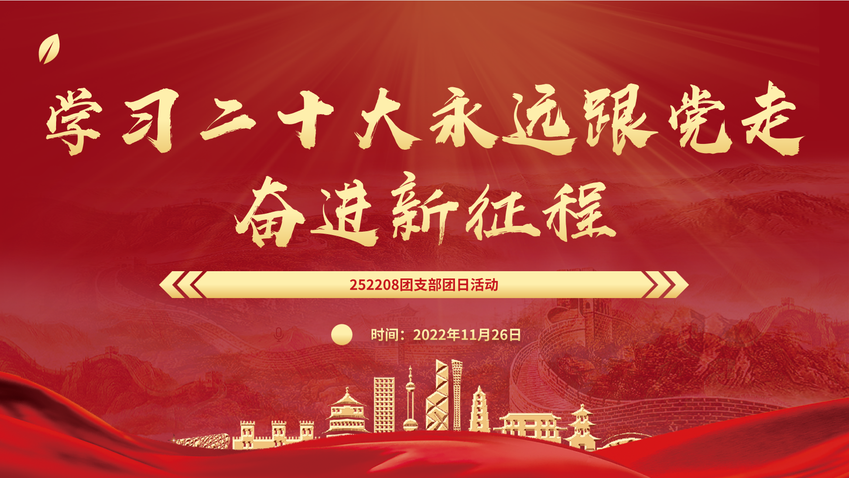 2022年11月26日下午,新葡萄8883官网AMG252208班团支部在团支书郭岳的带领下开展“学习二十大 永远跟党走 奋进新征程”主题团日活动,暨观看云团课并在课后进行体会分享。本次团日活动参与人员有支部内全体19名共青团员和8名班级成员。