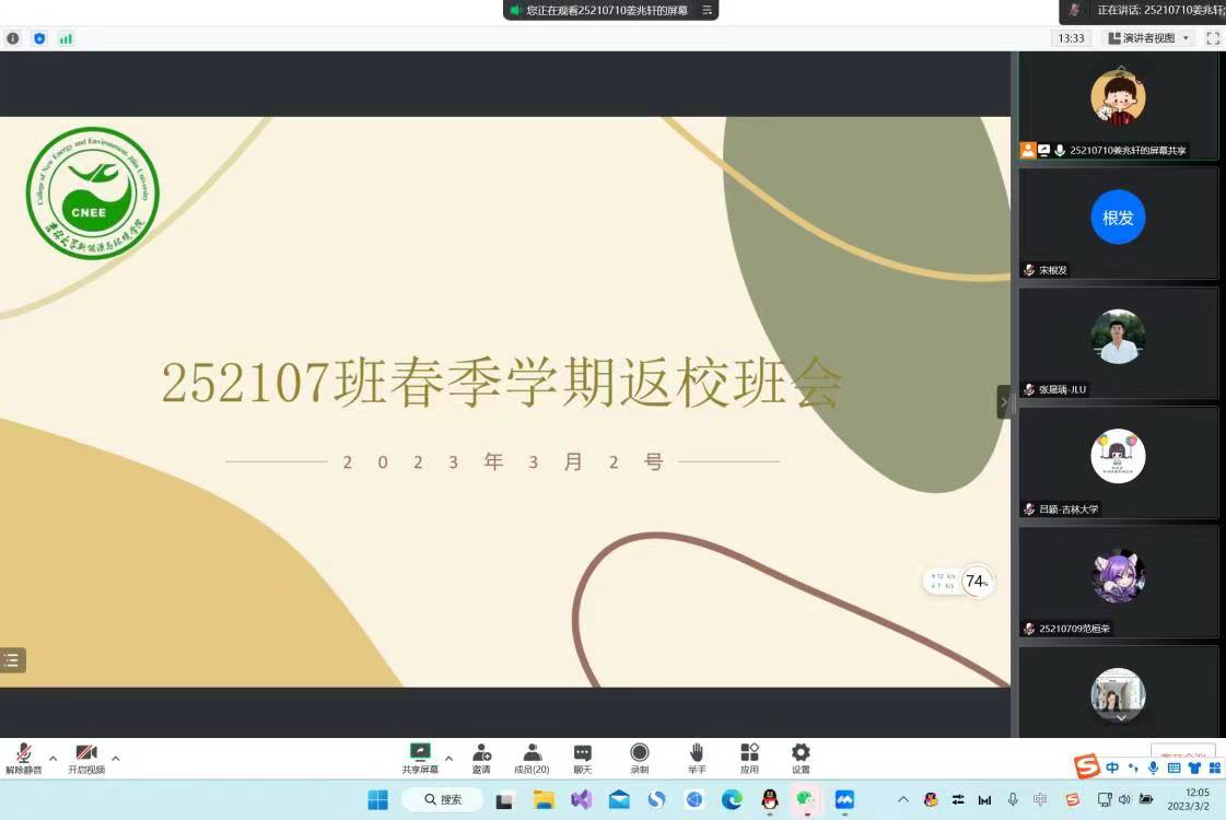 春回大地,兔跃青山,新能环21级学子迎来新学期新气象。3月2日中午,在班主任吕颖老师、张晟瑀老师的带领下,新葡萄8883官网AMG252107班全体同学在线上召开班会。