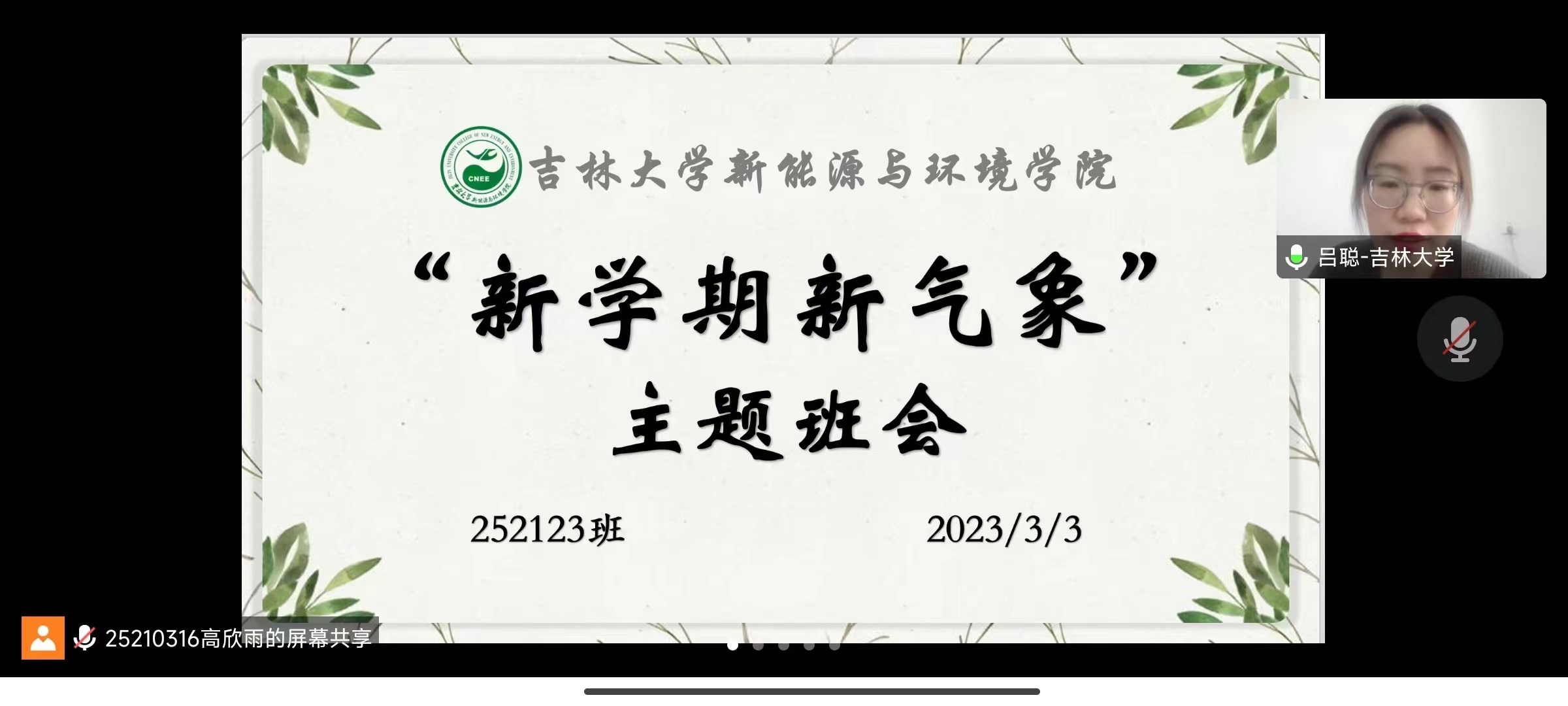 新学期伊始,为进一步了解同学们的思想动态与身体状况,增进班级同学交流,厚植班级同窗情谊,2023年3月3日下午1:30,新葡萄8883官网AMG252123班全体同学在班主任吕聪老师的带领下,开展了线上形式的主题班会。