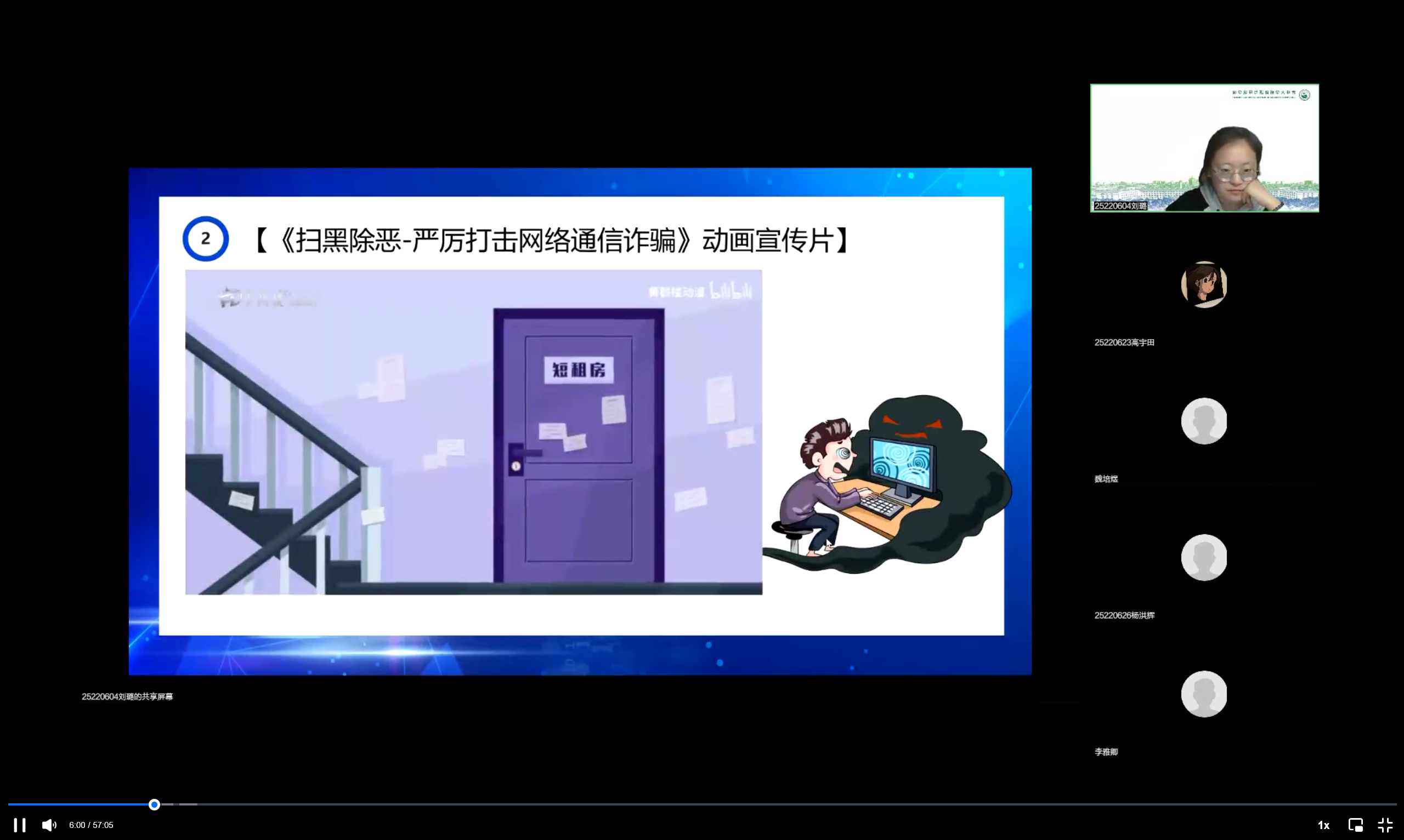 团支书为同学们介绍了什么是“校园贷”。让同学们了解“校园贷”是如何产生的,又如何从“校园贷”发展成“校园害”。随后,团支书组织同学们通过PPT中的视频学习“反电信网络诈骗”的内容。
