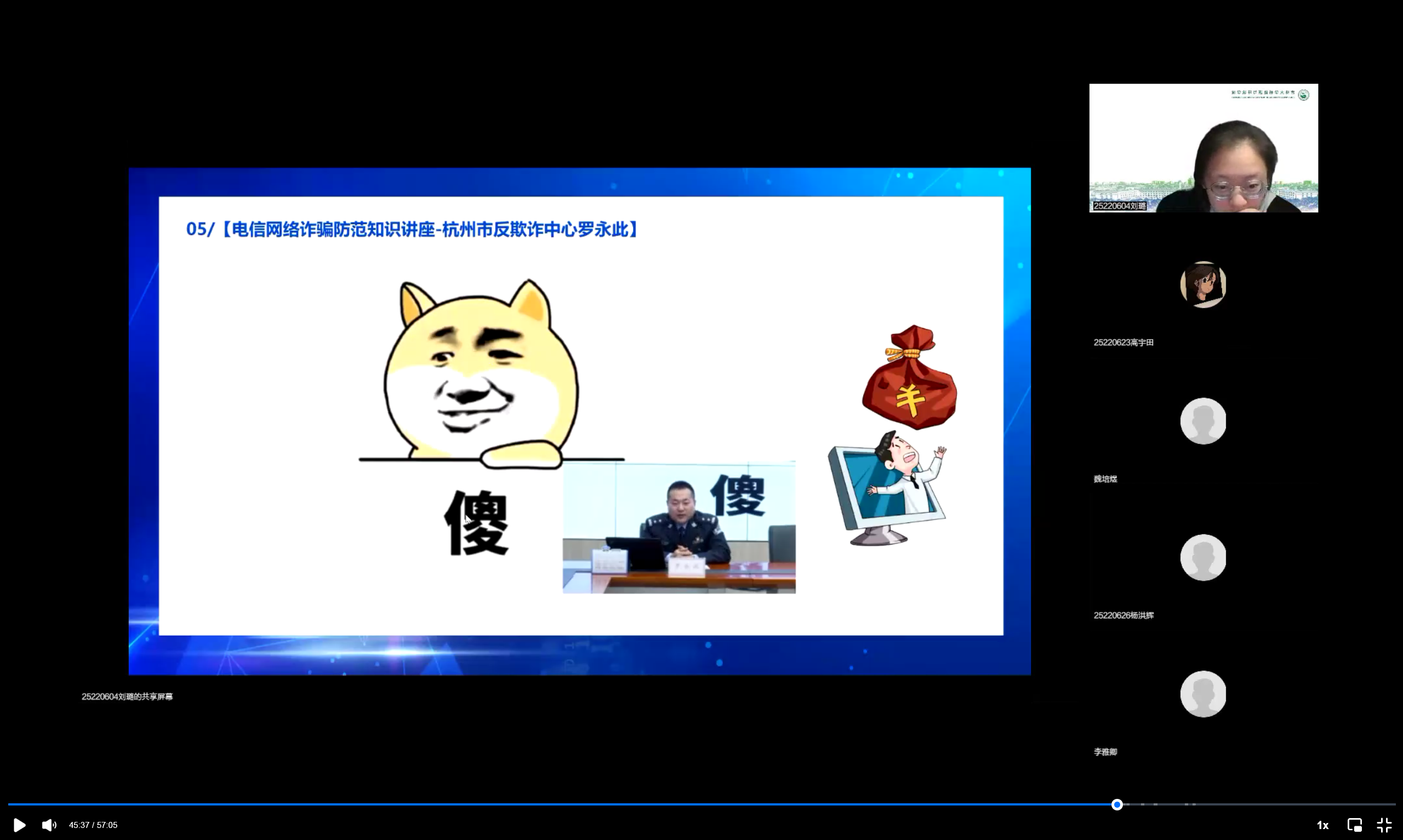 最后,团支书刘璐呼吁大家将学到的防诈骗攻略用于实践,深入了解校园贷诈骗的严重危害,明白了网络诈骗的套路之深,更需要擦亮双眼看穿骗局,提高对电信网络诈骗自我保护能力。