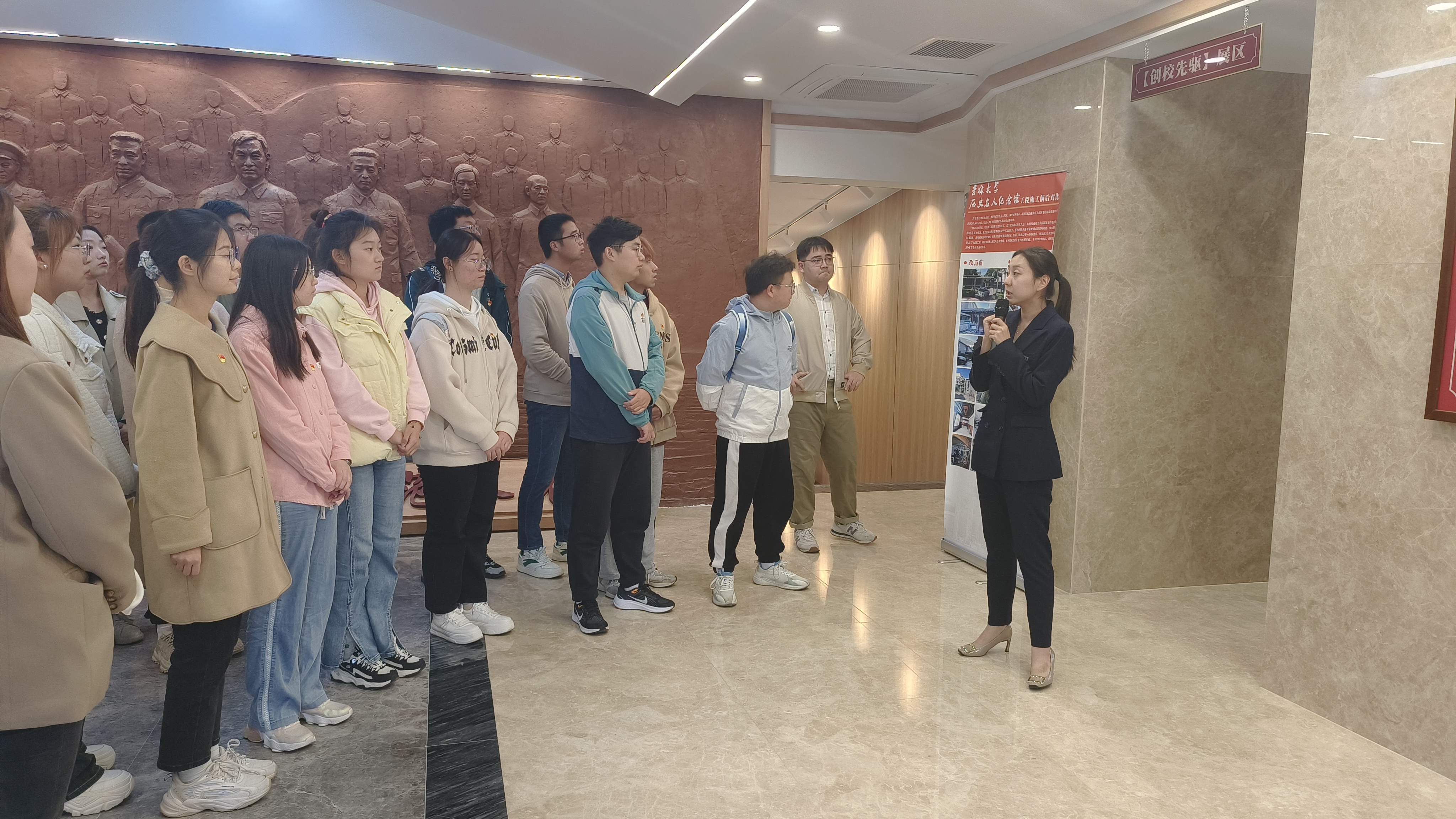 跟随讲解员老师的脚步来到“创校先驱”展厅,学生们在讲解中进一步了解了六所学校的创校历史,领略了六校师生走过的光辉岁月。建校初期,六位校长开拓奋进、筚路蓝缕,为党和国家的教育事业作出了开创性的贡献,正是他们立德树人、以启杏林,才有了如今供无数学子求学深造的,在各方面蓬勃发展、大方光彩的吉林大学。