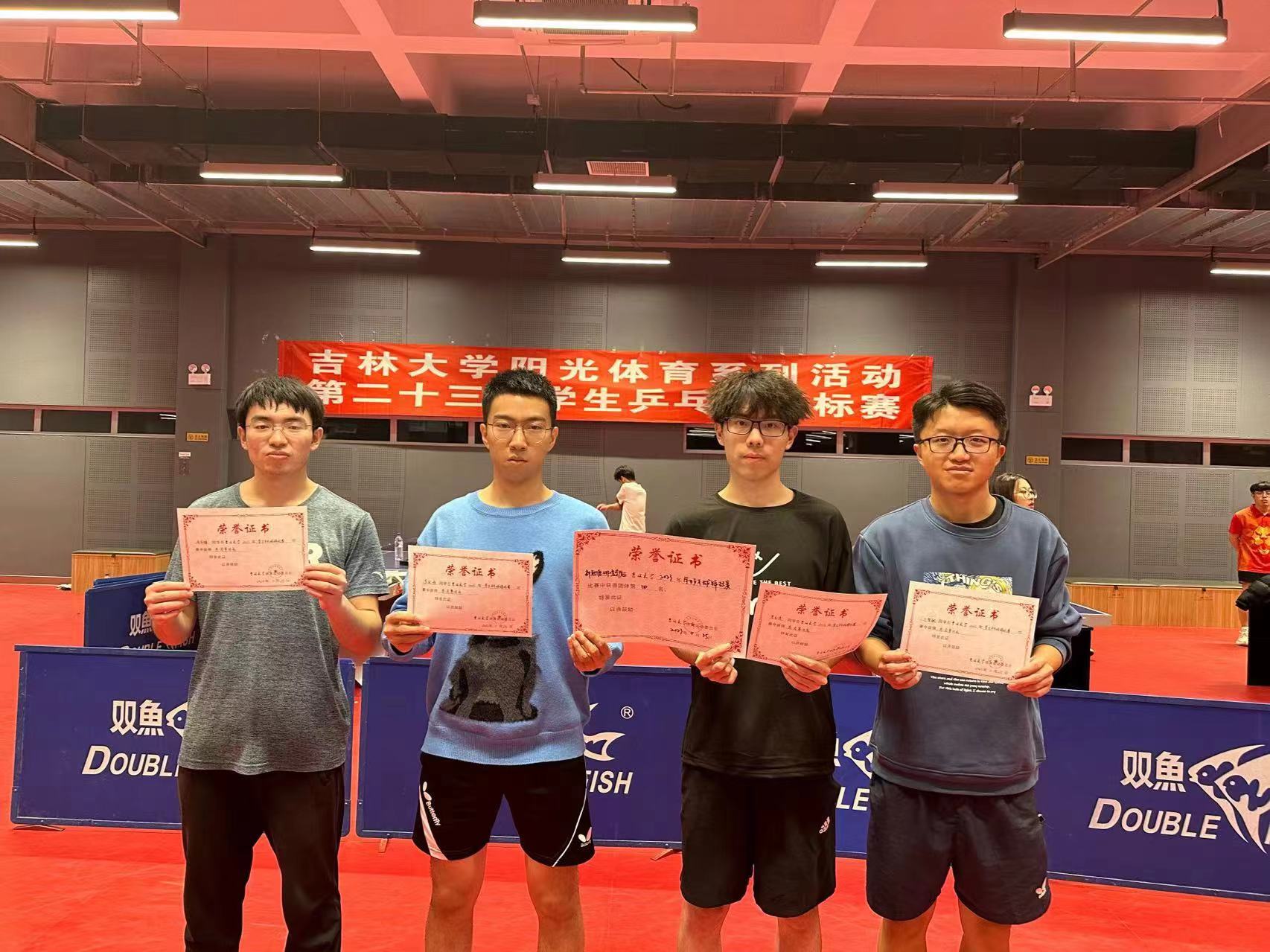 吉林大学阳光体育运动系列活动第二十三届学生乒乓球锦标赛于2023年11月25-26日在宋志平体育馆进行,新葡萄8883官网AMG积极参加此次活动,比赛的前夕,经过激烈的选拔,选出了四位男生参加男子乙组单打和男子团体赛,他们分别是2022级本科生贾本涛、2022级研究生李孜涵、2023级研究生于智敏、2022级研究生周金锋;女生方面,2023级本科生魏兴妍参加了女子单打比赛。