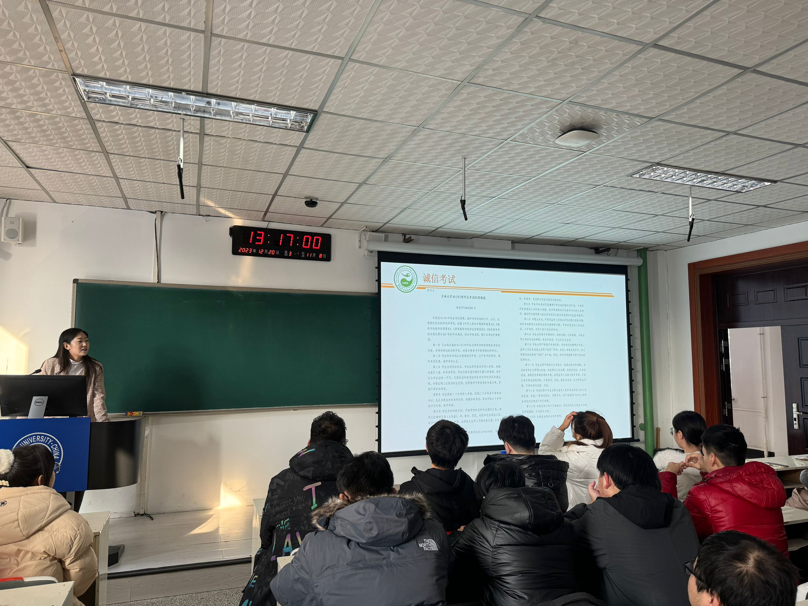 诚信是参加考试必须遵守的原则。最后,在李薇老师的带领下,同学们阅读了《吉林大学本(专)科学生考试纪律规范》,了解考试纪律,发扬诚信精神。到此,本次年级大会圆满结束。