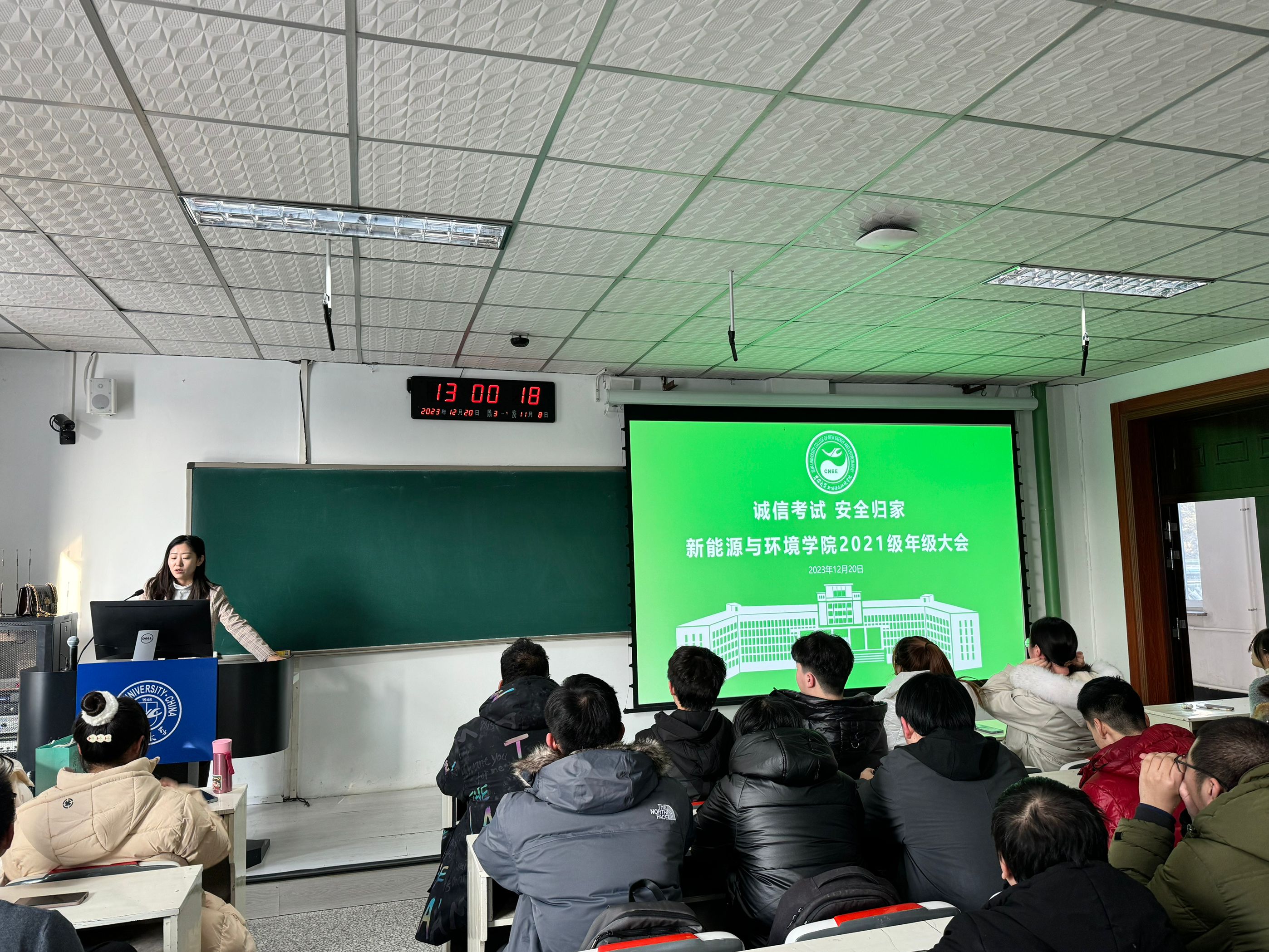 岁月不居,时节如流,这个充实而忙碌的学期也将迎来尾声。在期末周即将来临之际,为了帮助同学们顺利通过期末周的考试,再次强调考试规范与考试纪律,助力同学们度过安全愉快的假期,2023年12月20日,在辅导员李薇老师的主持下,新葡萄8883官网AMG2021级年级大会如约召开,会议主题为“诚信考试,安全归家”。