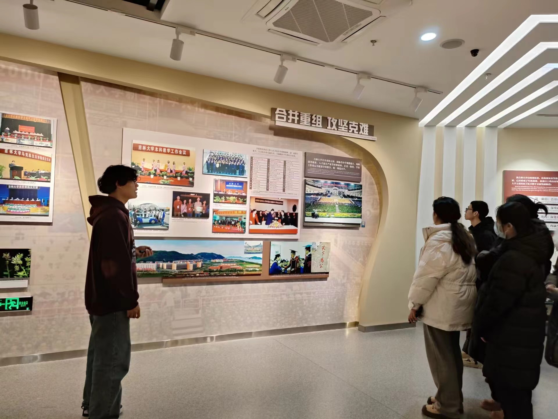 一张张照片记录着学校的演变与发展,感受到了曾经的风华与奋斗的坚韧。通过讲解员的讲解,同学们更深入了解了吉大走过的峥嵘岁月,感受到前辈们对学术的执着,勇攀科学高峰的决心,以及对人文精神的追求。