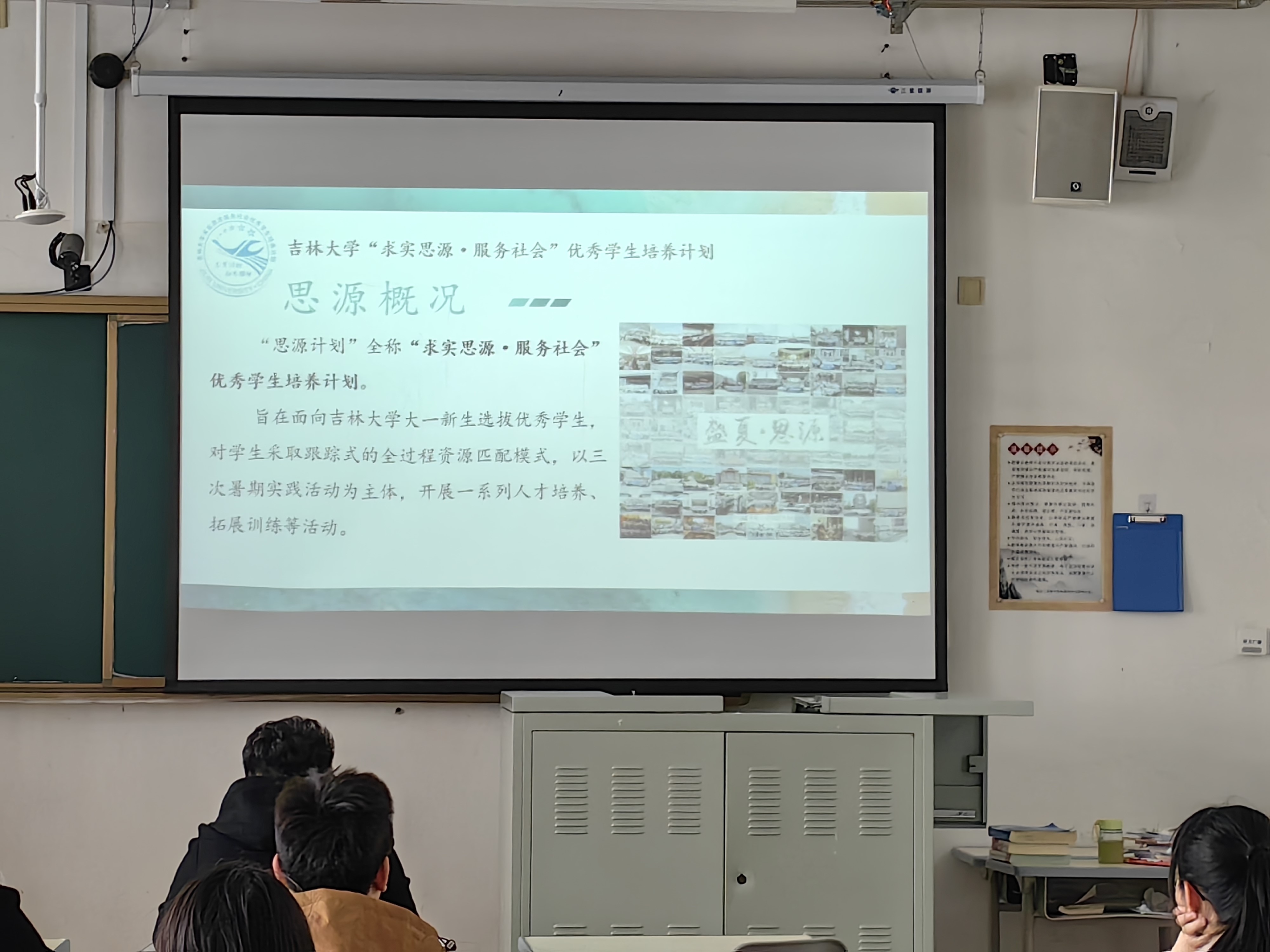 刘雅文同学首先为大家播放了思源计划的宣传视频,让大家对思源计划进行初步的了解,而后从思源计划的概况、宗旨、起源以及培养模式等方面对吉林大学“求实思源·服务社会”优秀学生培养计划做出详尽的介绍,随后为同学们播放了思源十一期2023年暑期出行实践的视频,进一步激发了同学们的热情。