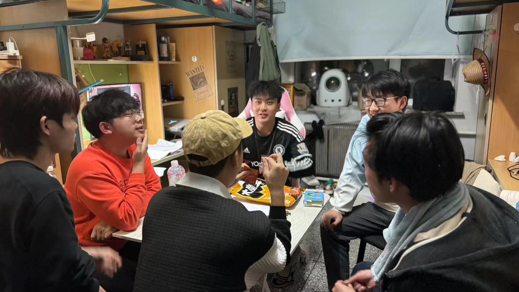 252128班班会在寝室举行,同学们围坐一圈,分享了自己的近况。其中,最受关注的议题是考研和未来的就业方向。为了帮助同学们缓解由此引发的焦虑和压力,心理委员提出了听音乐和做户外运动等缓解方式,并表示愿意随时倾听心声,为大家提供及时的支持和帮助。