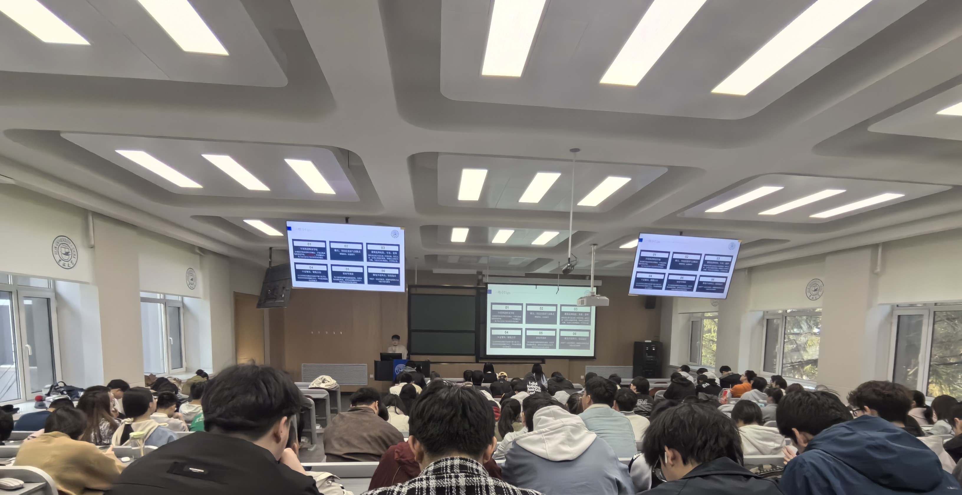 会上,几位主讲人以自身为例分别讲解了公务员考试的备考时间线、选岗经验、笔面试准备;介绍了如何正确选取考研复习资料,合理规划备考安排,积极调整备考心态;分享了如何树立目标院校、准备简历材料、联系意向导师;解答了考研过程中可能遇见的分析院校、申请调剂、心态调整等各种实际困难。四位学长的分享各有侧重,讲解中“干货”满满掌声不断,现场的同学们意犹未尽。