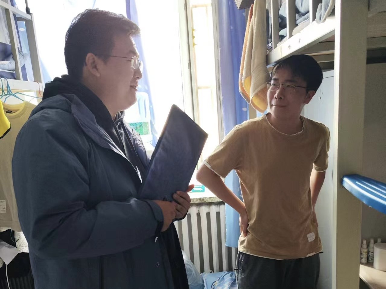 4月20日,2022级辅导员母茂松老师进入中心校区学生寝室,开展查寝工作。共检查39间学生寝室,检查卫生情况,提醒学生,季节变暖,要保持寝室卫生,多开窗通风,多户外锻炼。同日,母老师又深入地下水科学与工程专业课《水文地质学基础》课堂,发现2人请假,1人迟到,其余38人按时到达课堂。