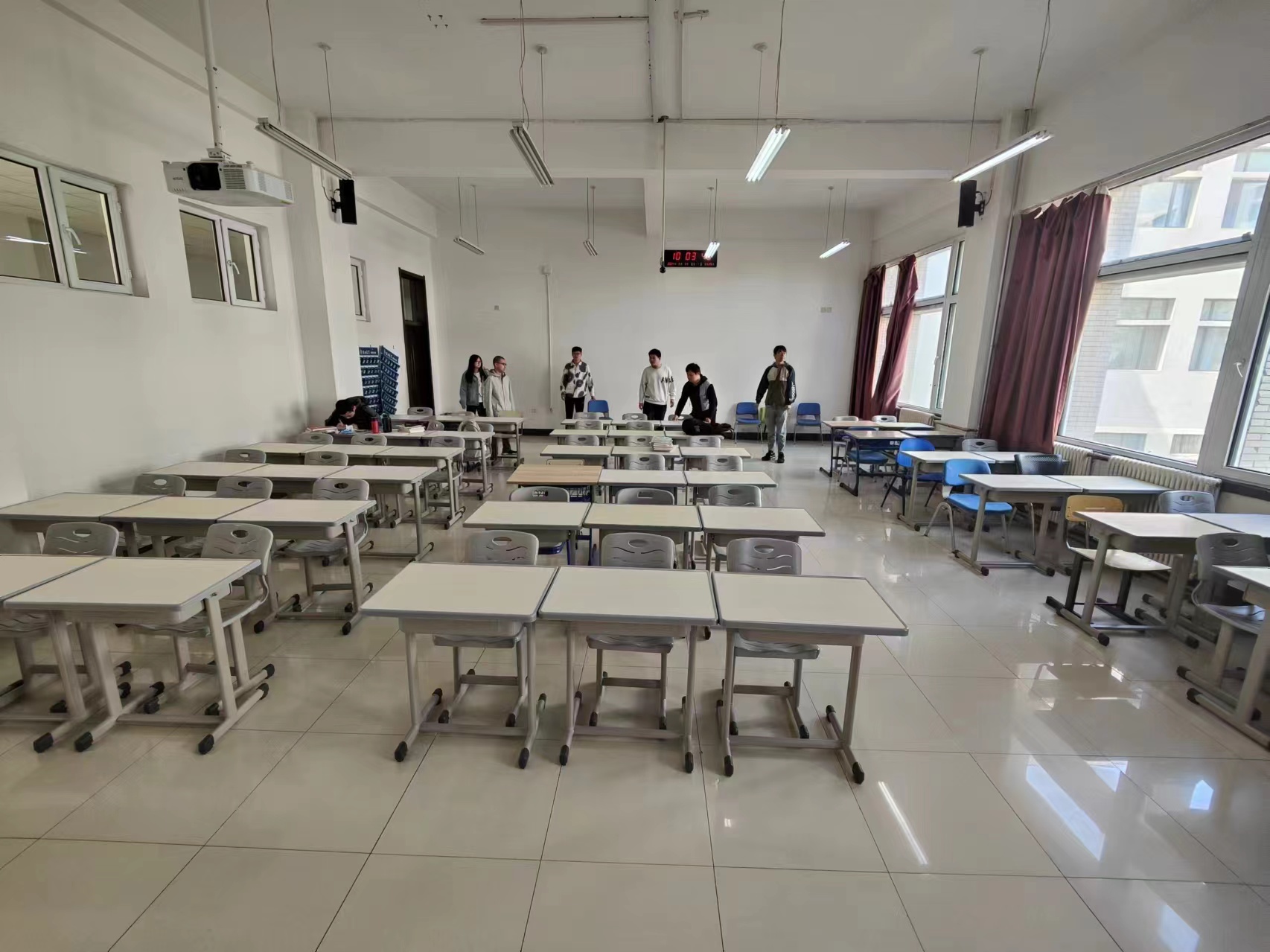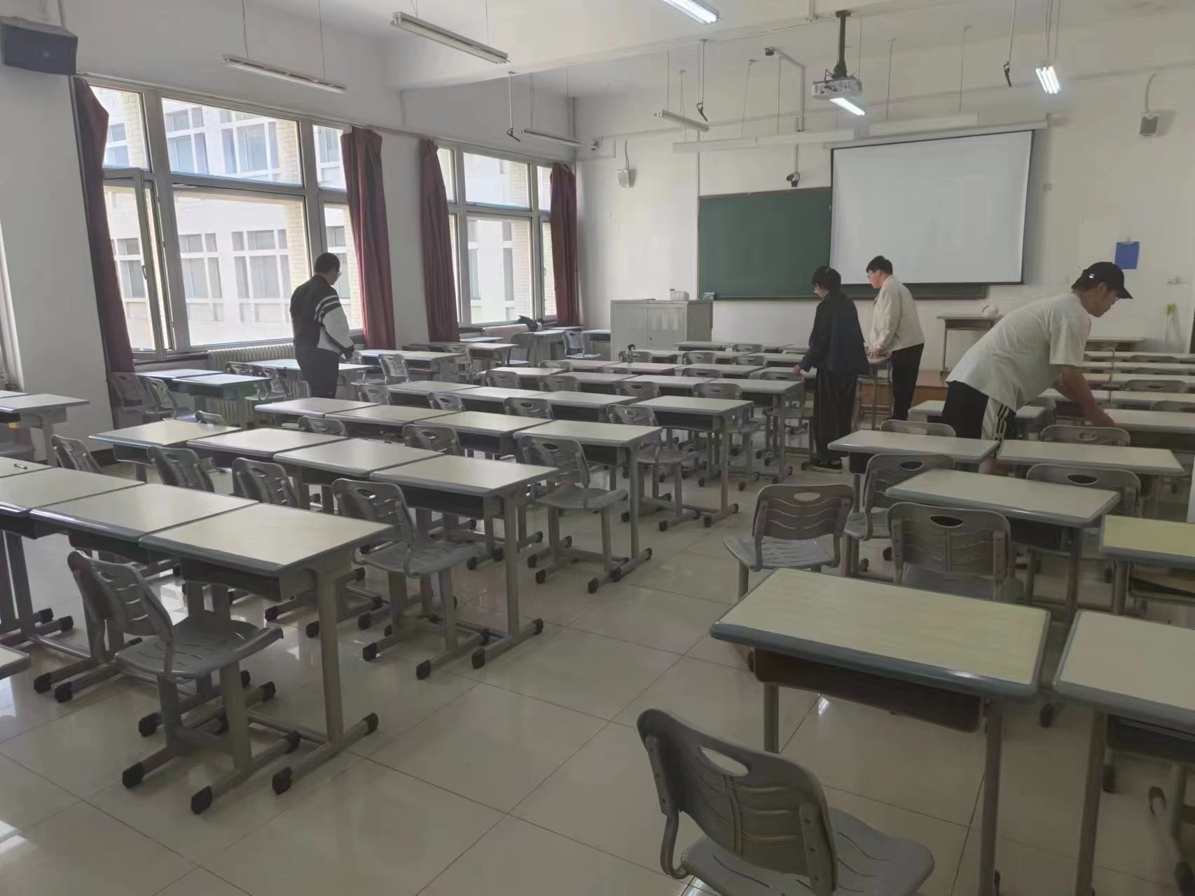 活动当天,同学们按照事先分工,在李四光教学楼的各个教室内开始了桌椅摆放的工作。有的同学负责搬运桌子,有的同学负责摆放椅子,有的同学负责清理地面。大家分工合作,井然有序地开展工作,相互配合,完成了教室内桌椅的重新摆放任务。整个活动过程中,每位同学都积极主动,充满热情,展现出了良好的团队合作精神。