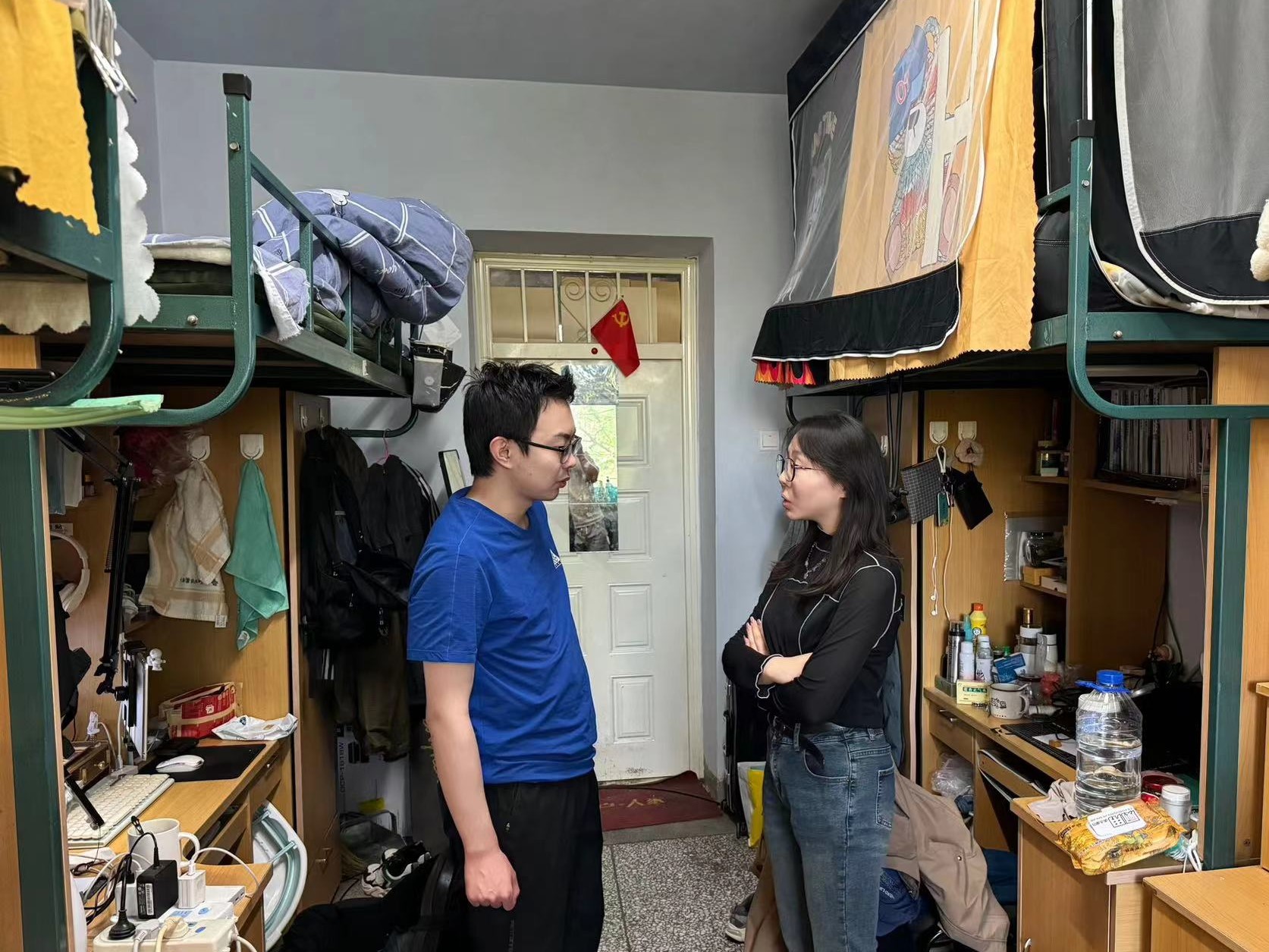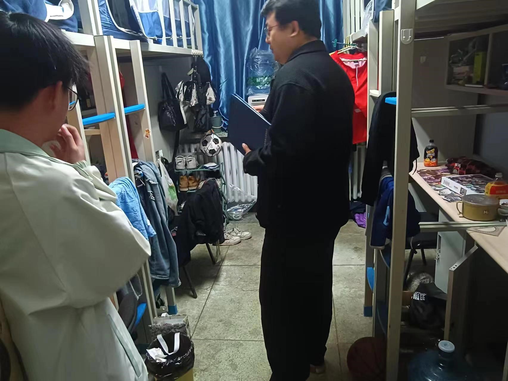 5月15日,2022级辅导员母茂松老师对中心校区学生寝室进行了卫生检查。母老师督促同学们尽快清理垃圾,避免气温回升产生异味,滋生细菌,保持寝室卫生整洁,营造良好生活环境。