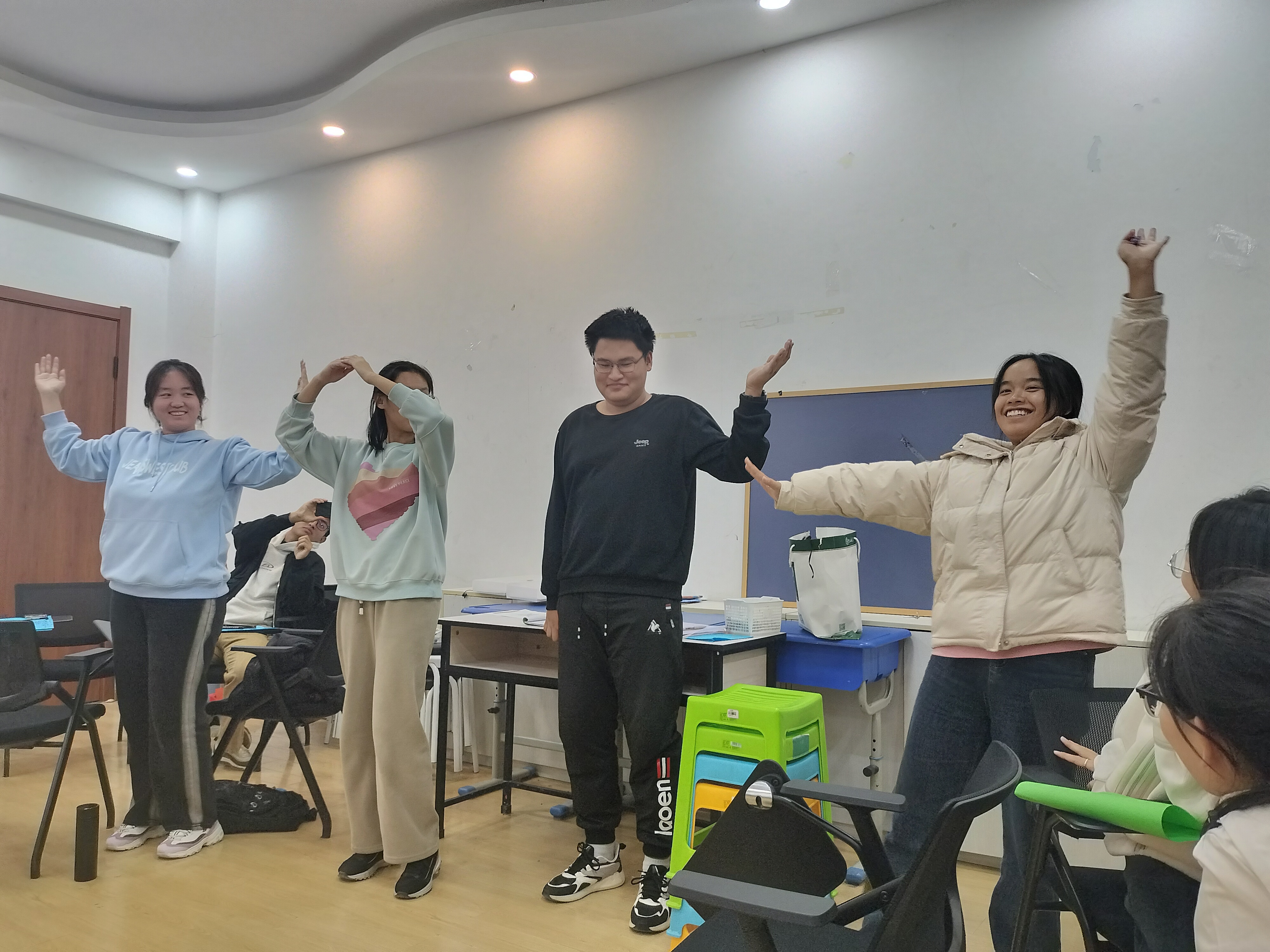 在之后的其他活动中,同学们群策群力,团体协作,在欢声笑语中提升了小组凝聚力,融入了这个刚成立的新集体,欢乐撒满了整个教室。