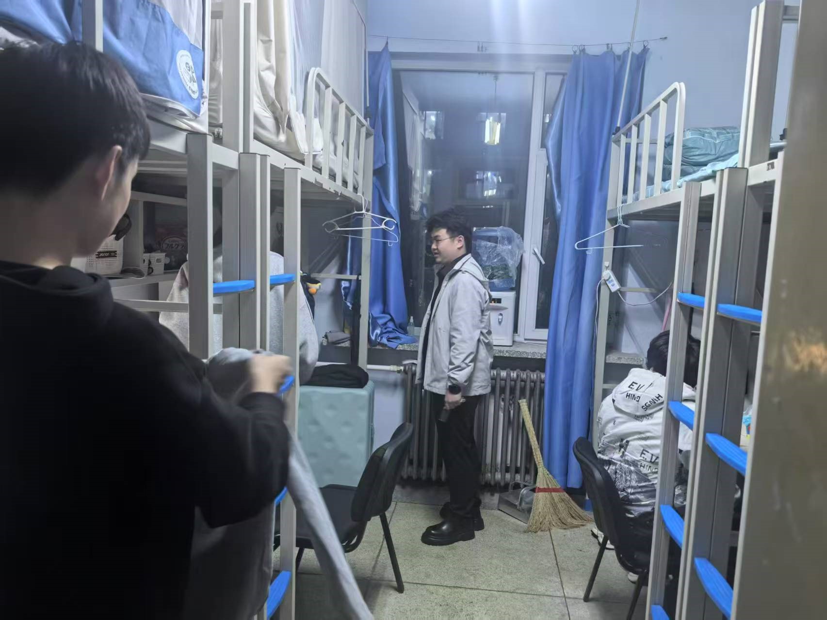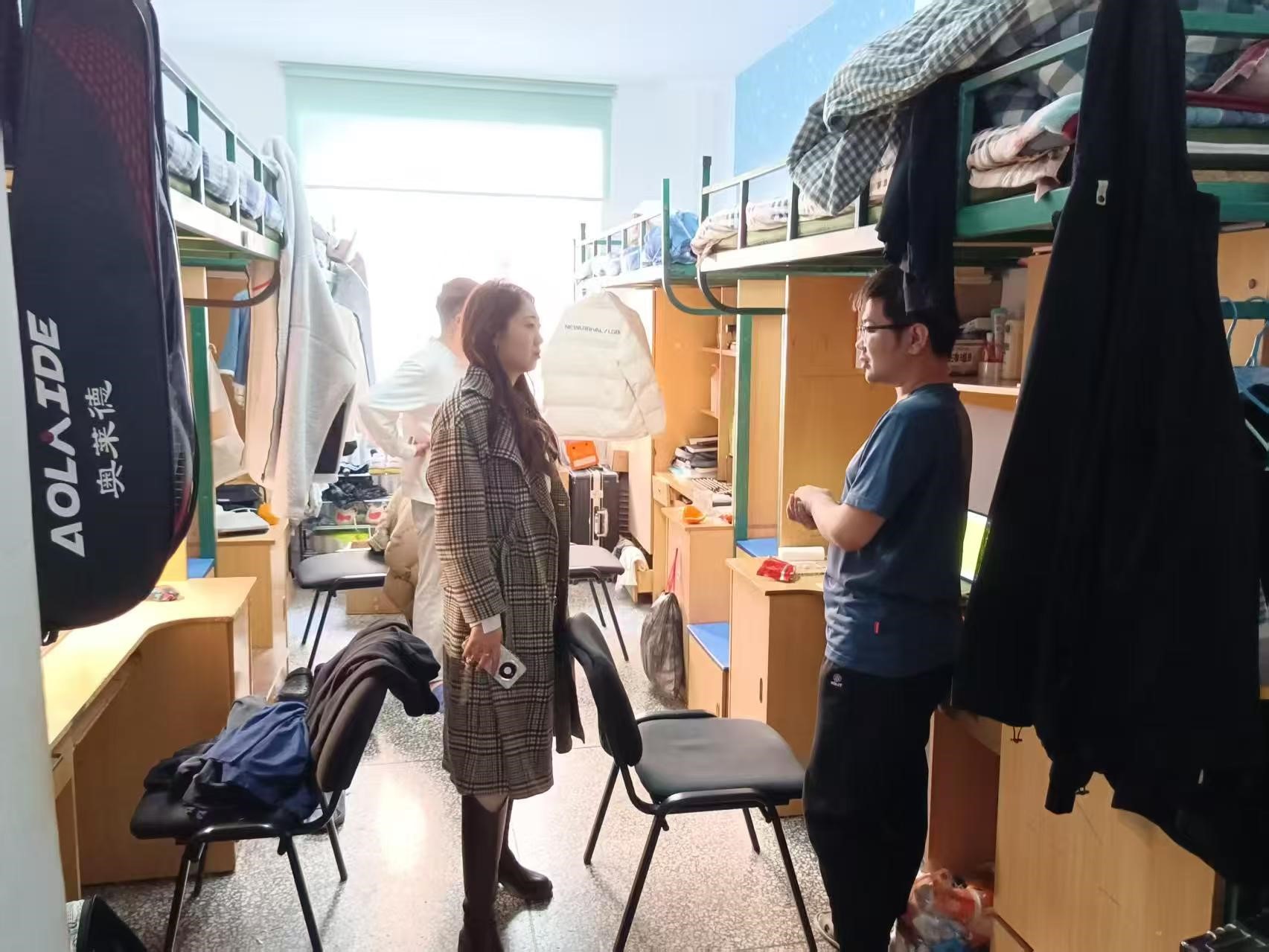 4月9日,2021级辅导员李薇老师进入朝阳五公寓、朝阳七公寓对寝室卫生、消防安全进行检查,并在走寝过程中了解学生考研调剂情况和求职学生就业进程。