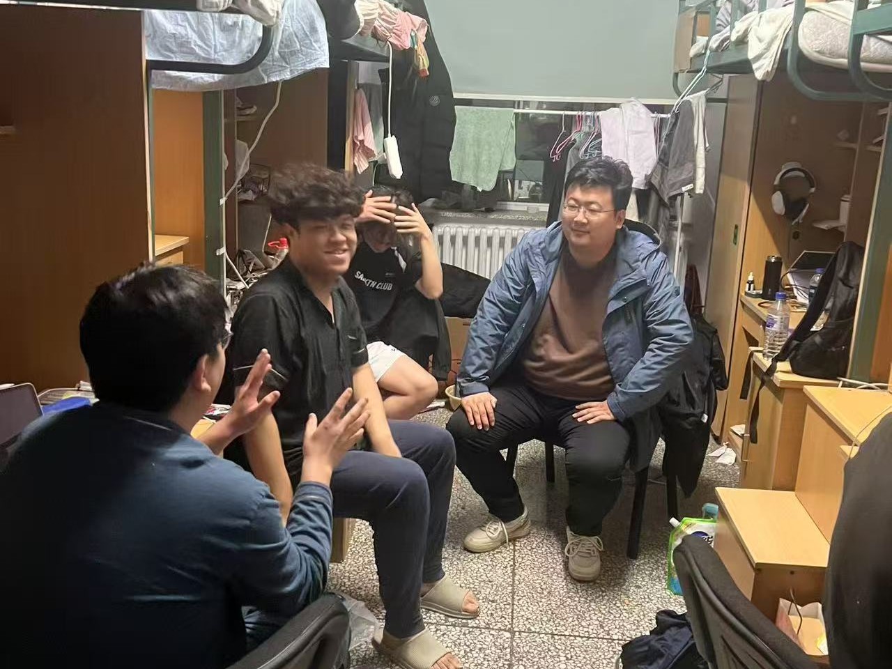 4月9日,2023级辅导员姜岳彤老师进入南苑一公寓寝室,了解转专业同学搬寝进度,同时对部分寝室进行调整,并提醒同学们定期收拾宿舍卫生。同日,姜老师进入《毛泽东思想和中国特色社会主义理论体系概论》课堂,了解学生到课情况,本次课程共1人请假。