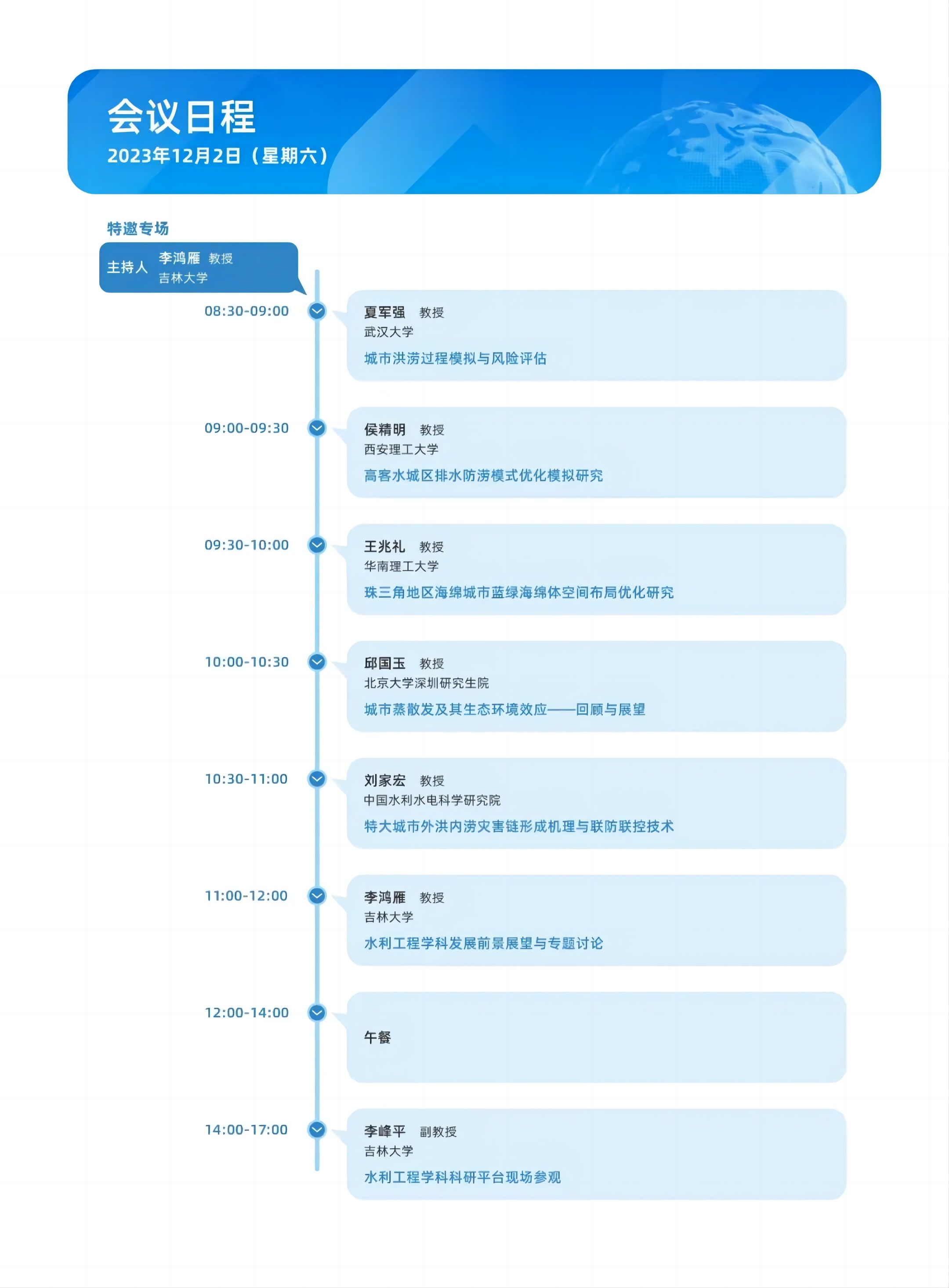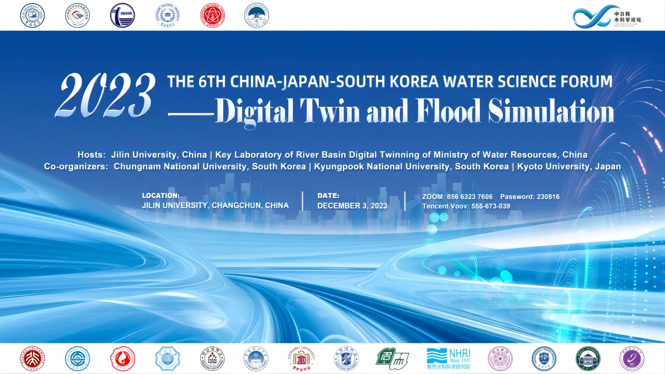 论坛简介:由新葡萄8883官网AMG、水利部数字孪生流域重点实验室主办,韩国忠南国立大学、韩国庆北大学、日本京都大学协办的“第六届中日韩水科学论坛”将于2023年12月2-3日在吉林大学前卫北区理化楼540会议室召开,会议结合线下和线上形式,邀请多名国内外水科学领域专家学者,围绕“数字孪生与洪涝模拟”主题,分享、交流智慧水利和数字孪生领域的最新研究成果,探讨洪涝灾害过程模拟与风险管理中的前沿科学问题。