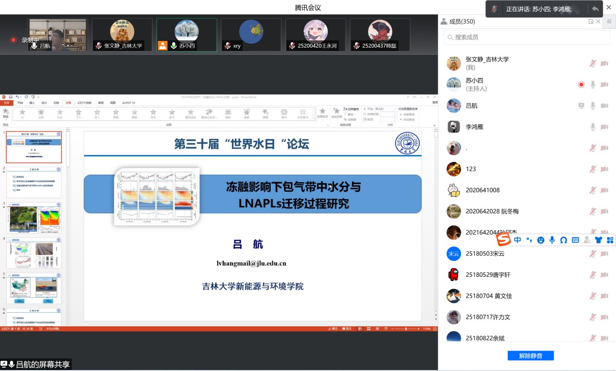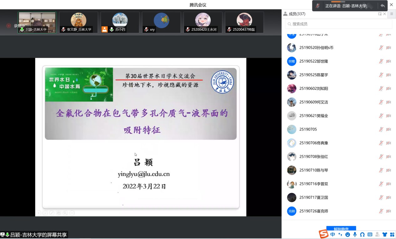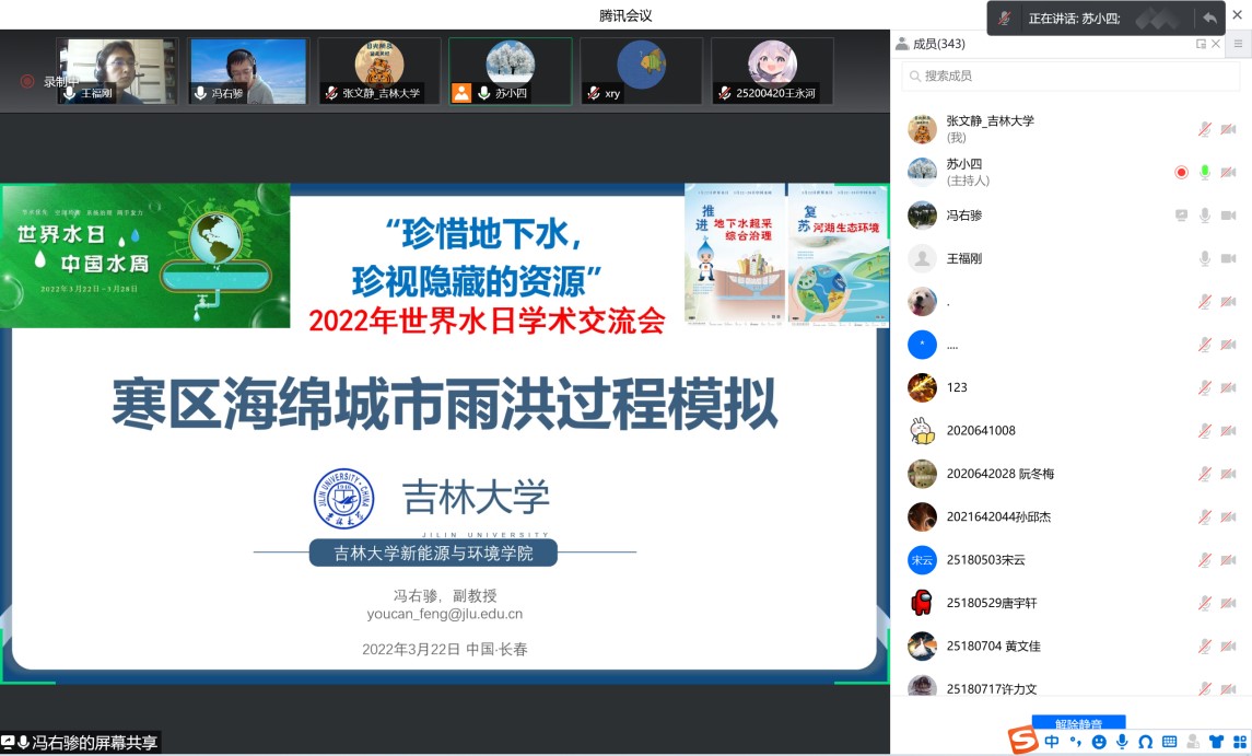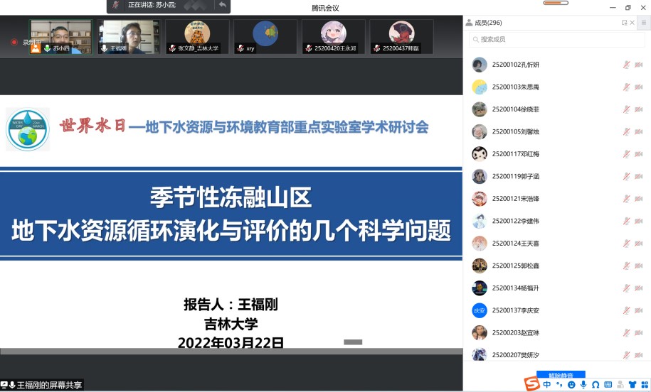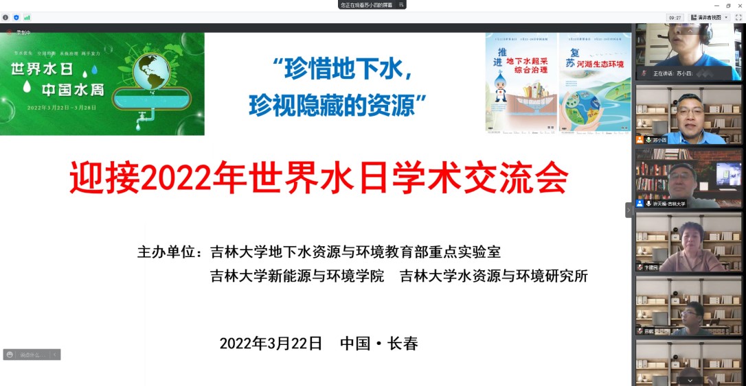 为深入落实习近平总书记“节水优先、空间均衡、系统治理、两手发力”治水思路,共同探讨地下水保护与利用的平衡之道,3月22日下午新葡萄8883官网AMG、水资源与环境研究所与地下水资源与环境教育部重点实验室共同组织召开了迎接2022年世界水日学术交流会。会议由水资源与环境研究所所长苏小四教授主持,学院领导、相关教师和研究生、本科生同学350余人在线参加了此次学术交流。