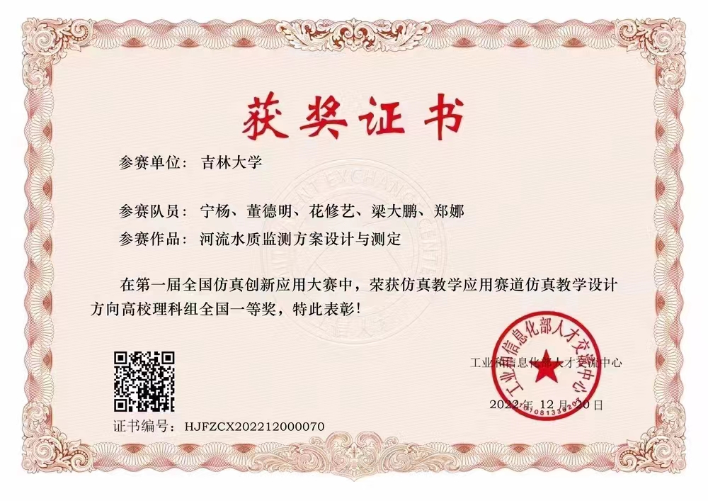 “基于生态系统观的混合式课程教学模式的构建与实践”获得吉林省教学成果奖三等奖、吉林大学教学成果奖一等奖;“环境化学系列课程教学团队”和“环境生态教学创新团队”被评为吉林大学优秀基层教学组织;“河流水质监测方案设计与测定”获全国仿真创新应用大赛一等奖“包气带与饱和带渗流运动模拟”获全国仿真创新应用大赛吉林省赛二等奖;获批学校规划建设教材立项4部,出版规划教材2部;获批吉林省高教科研课题1项,吉林大学“学科育人示范课程”两项;获吉林省本科高校智慧课堂教学创新大赛二等奖1项。