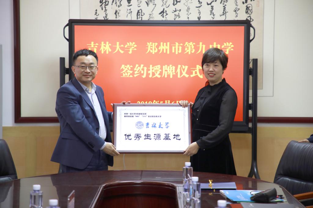 5月6日—7日,为加强学校与河南各高中的联系,提高生源质量,新葡萄8883官网AMG党委书记汪祥松、法学院党委副书记兼副院长林媛媛一行到河南省开展招生宣传工作,在郑州市第九中学、焦作市第一中学、温县第一高级中学举行了“优秀生源基地”授牌仪式。