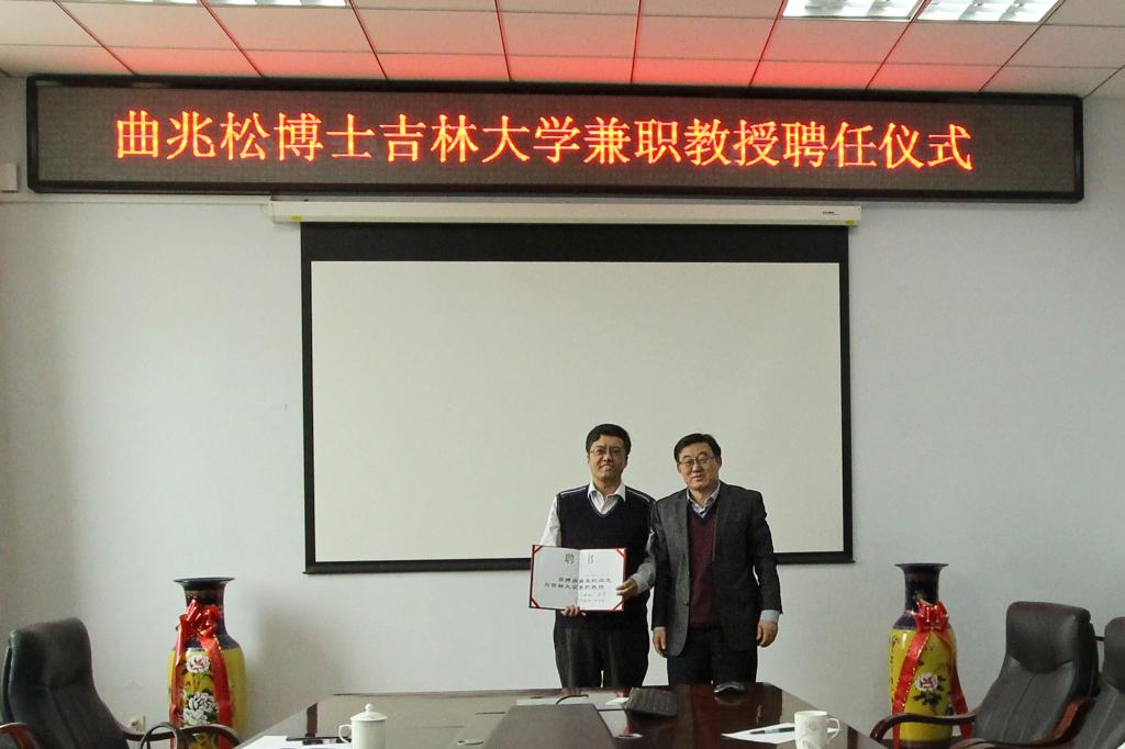 许天福院长向兼职教授曲兆松颁发了兼职教授聘任证书,并合影留念。
