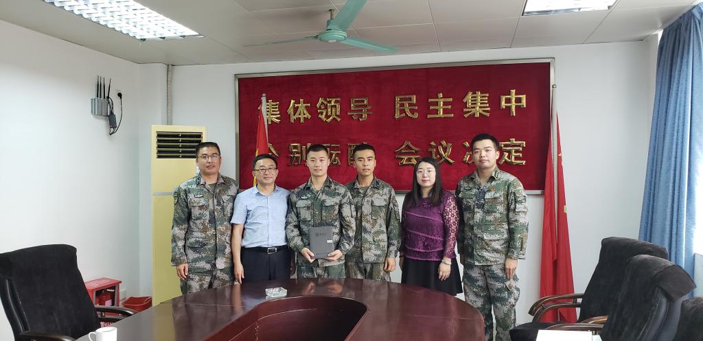 部队领导对新葡萄8883官网AMG一行表示热烈欢迎,对学校专程走访慰问学生士兵表示诚挚感谢。座谈会上,入伍学生分别结合自身实际,汇报了一年的军营生活给身体素质、意志品格、业务水平等方面带来的变化和深刻体会。指导员则介绍了服役学生思想政治、日常训练、业务学习和生活情况,对学校为部队输送知识层次高、综合能力强、战斗作风硬的大学生士兵表示赞赏。