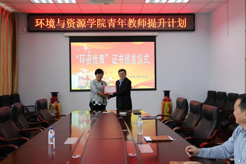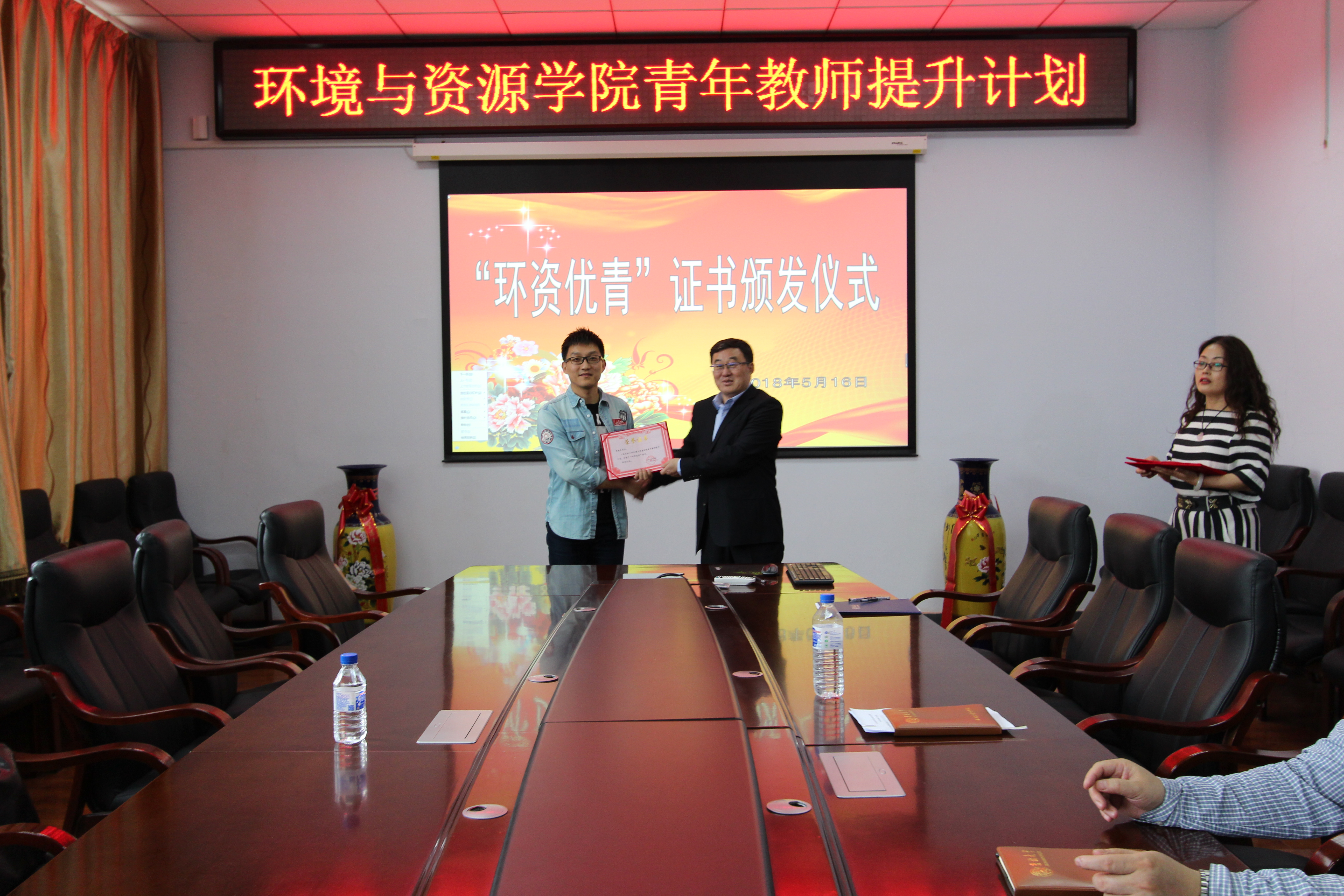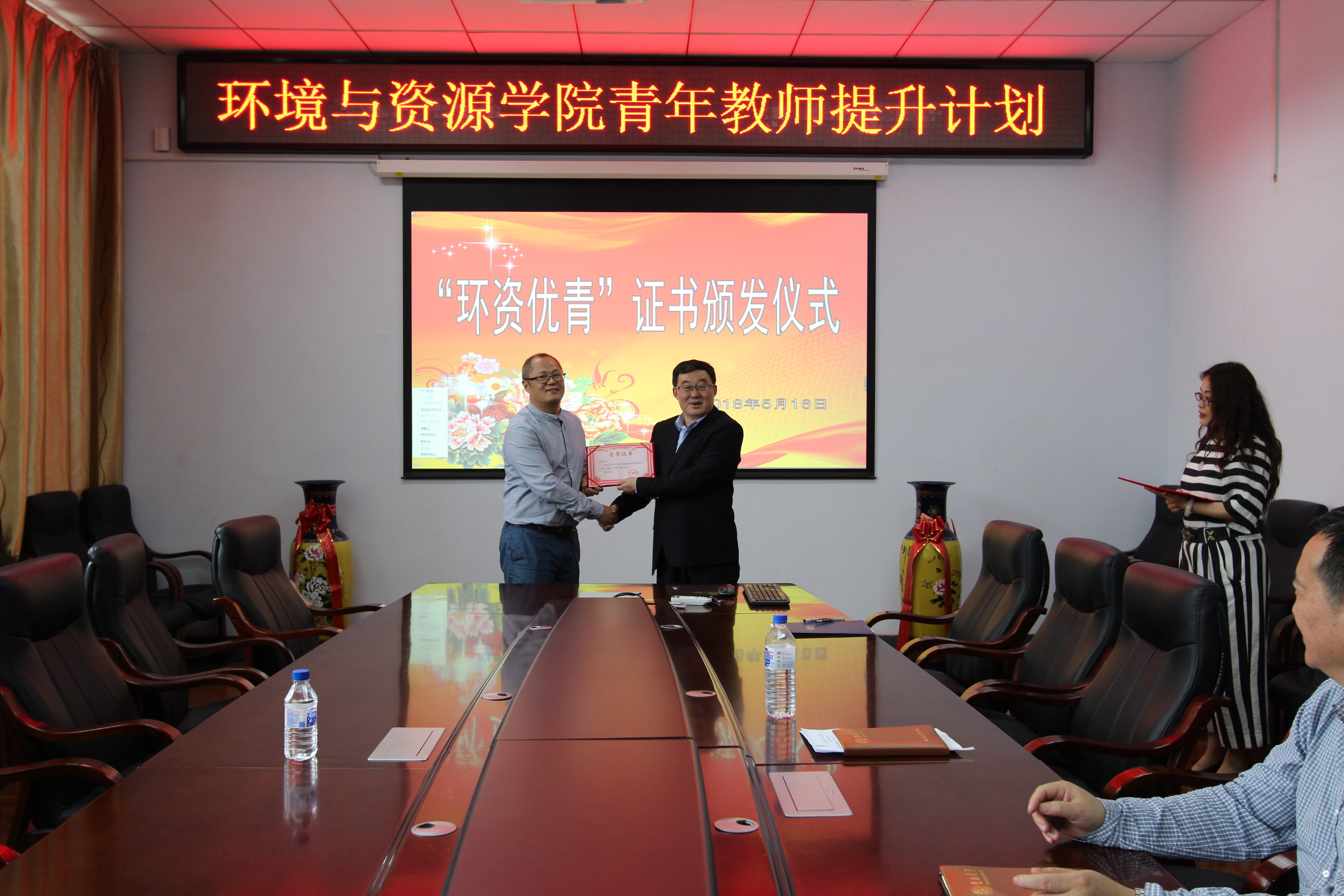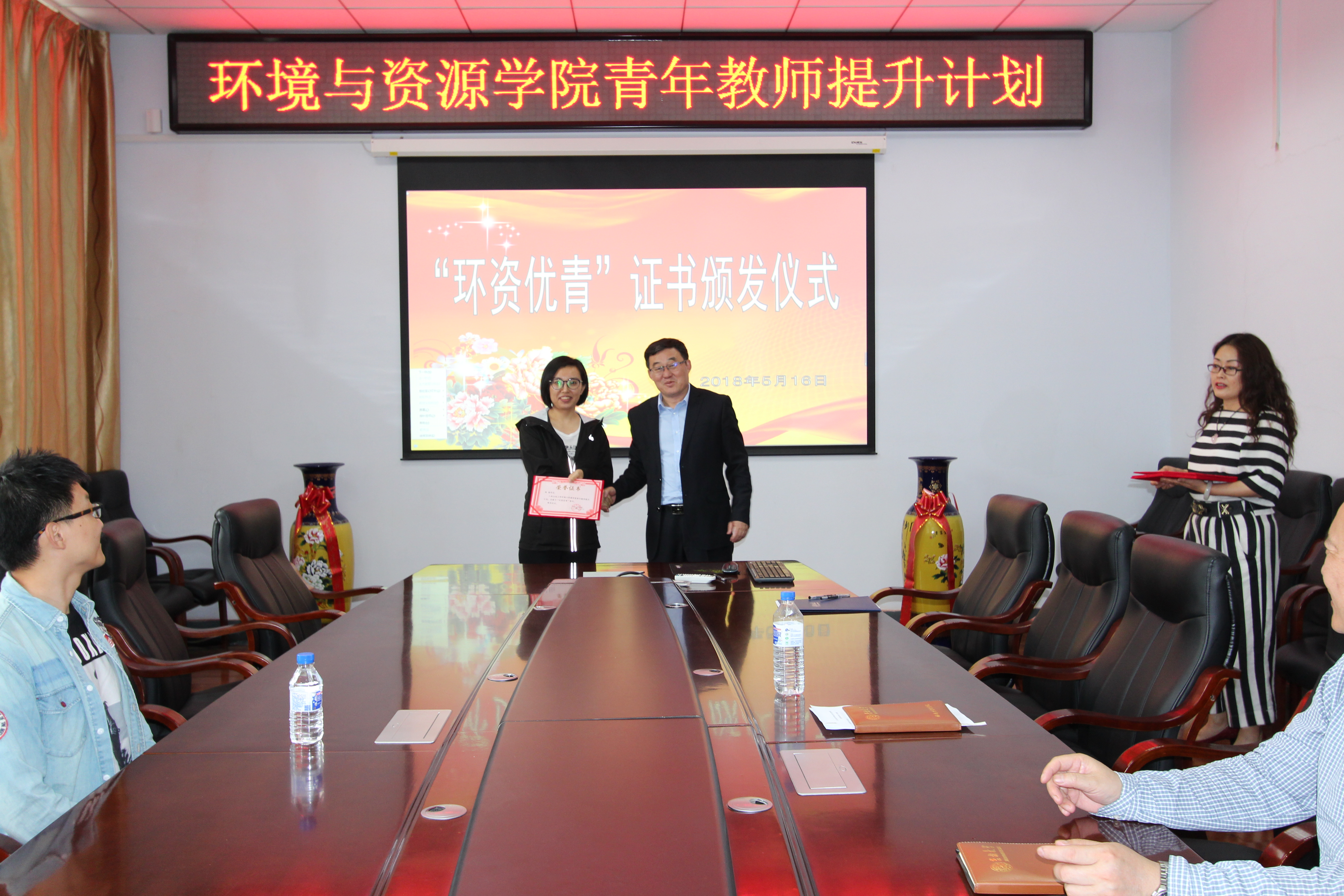 根据《吉林大学环境与资源学院青年教师提升(简称“环资优青”)计划》的工作安排5月16日下午,环境与资源学院在北区理化楼260会议室,举行了2018年度“环资优青”证书颁发仪式。学院班子和学院2018年度“环资优青”获得者参加了证书颁发仪式。仪式由分管科研的花修艺副院长主持。
