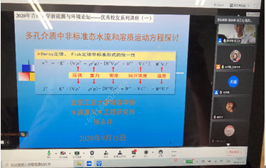 各位优秀学长结合多年来的工作心得和研究成果,给学院师生带来了多场精彩报告。张永祥教授对比介绍不同时期多孔介质水流和溶质运动方程的建立方法和形式,重点介绍基于统计热力学的地下水动力学方程的建立过程。王洪涛教授重点介绍了我国水处理剩余污泥和生活垃圾产生量巨大,在简介主要技术路线的基础上探讨我国应有的选择。曾溅辉教授重点介绍了沉积盆地地下水流动特征,讨论了地下水流动对油气藏形成和分布的影响,以及有关地下水对油气藏形成和分布影响的具体实例。李广贺教授结合我国水土污染治理国家修复和技术发展,重点介绍了地下水污染修复的相关政策和技术。井立强教授介绍了近年来发展的系列基于光生电荷调控的改性策略,以及所采用策略显著地改善材料光生电荷分离状况的关键机制。严刚副院长介绍了我国大气环境规划发展历程、主要技术方法及未来管理需求与展望。胡春教授重点介绍了如何通过表面微电场的构建,解决传统芬顿体系在实际应用中的瓶颈问题。束龙仓教授回顾了32年来从事地下水研究工作的足迹,介绍了济南泉水研究的关键环节、泉水持续喷涌的科学应对方法。