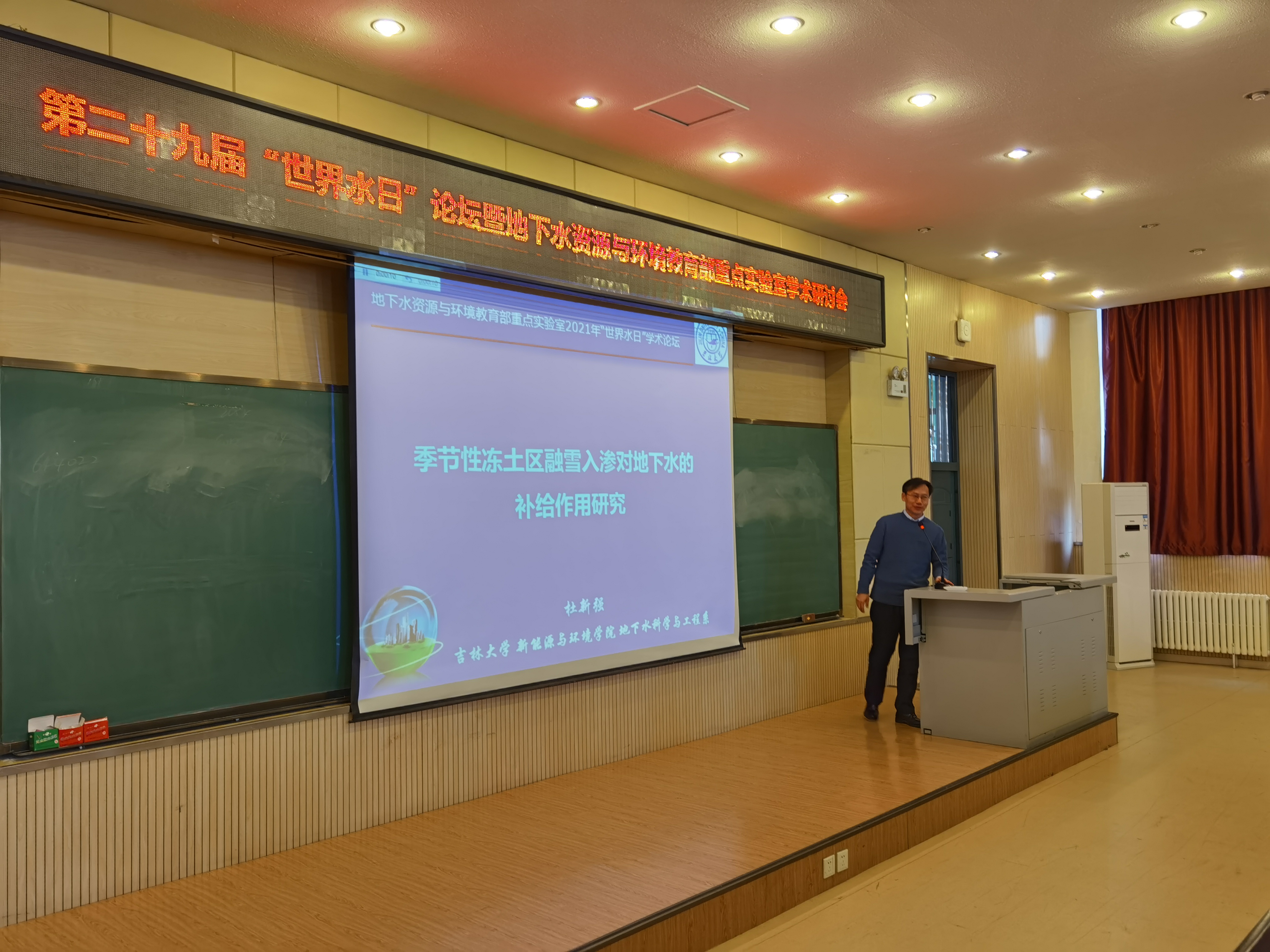 为响应第二十九届“世界水日”·三十四届“中国水周”宣传活动,地下水资源与环境教育部重点实验室于2021年3月21日在吉林大学前卫北区举办第二十九届“世界水日”论坛暨地下水资源可持续开发利用学术研讨会。本次会议紧密围绕地下水资源可持续开发利用方向的一些基础科学问题,开展了深入的学术交流和研讨。参加会议的人员包括重点实验室主任许天福教授,新葡萄8883官网AMG卞建民副院长、杨悦所教授、苏小四教授、李鸿雁教授等地下水专业的教师,地下水方向的研究生以及部分本科生参加了会议。论坛由地下水资源与环境教育部重点实验室副主任王福刚主持。