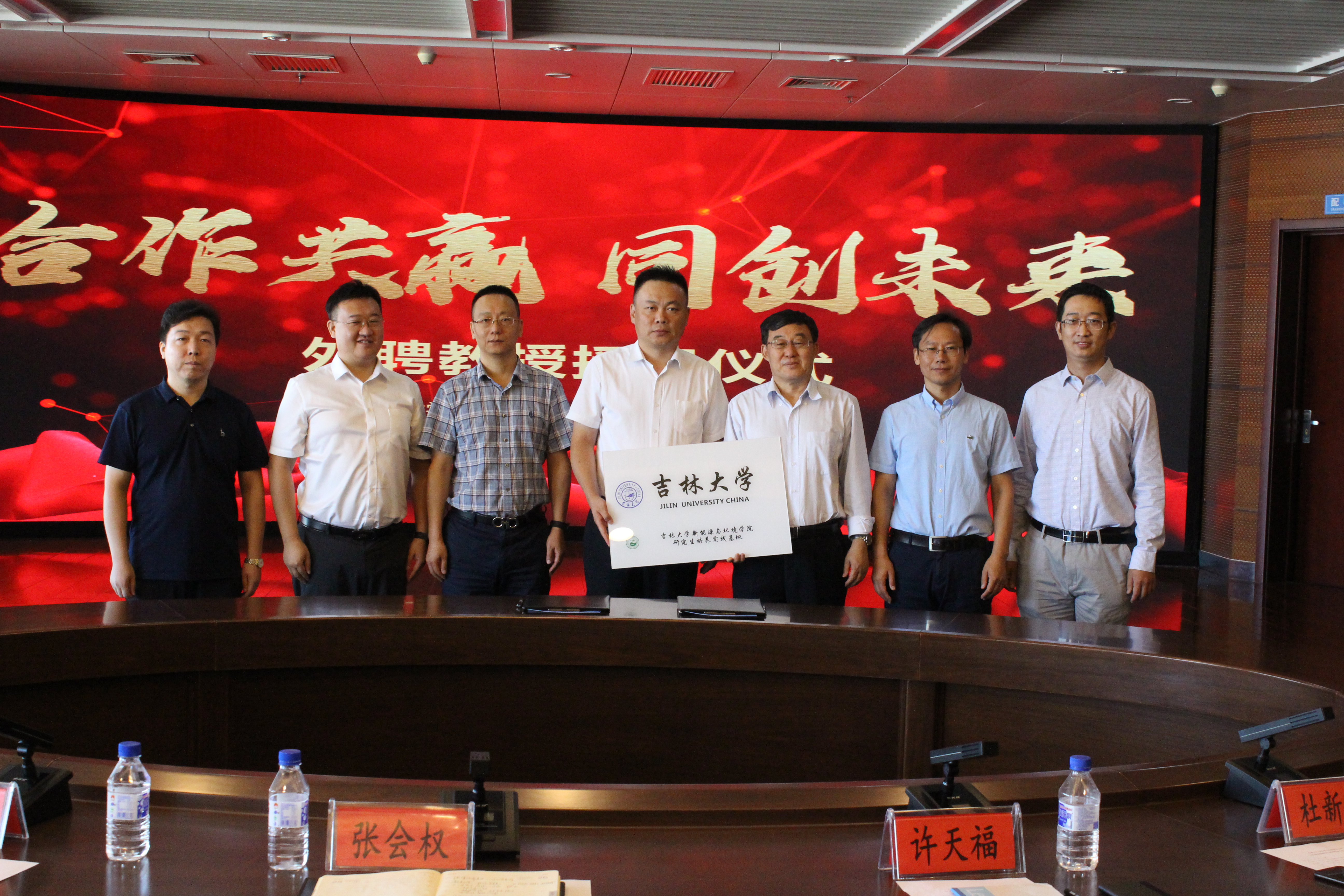 最后,许天福院长和张会权院长共同在合作备忘录上签字,并为研究生培养实践基地揭牌;学院许天福院长亲自为张会权院长、李建国总工、孙宏亮主任颁发了校外合作导师聘书。本次会议的圆满结束,标志着两院研究生联合培养实践基地的正式成立,双方建立良好合作基础,约定共同推进长春市新型城市雨洪管理体系的建设和完善。