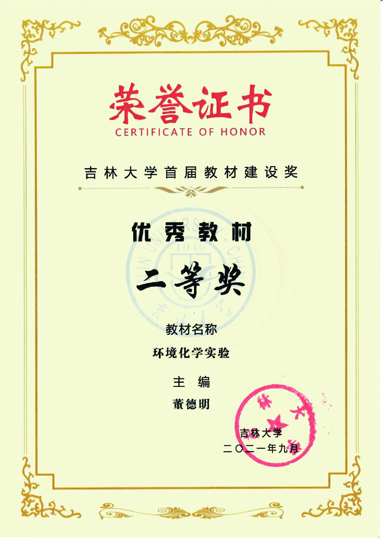 学院以做强一流本科、建设一流专业、培养一流人才为目标,持续推进专业建设和课程建设。2021年2月,学院环境工程专业被认定为2020年度国家级一流本科专业建设点。这是继2019年水文与水资源工程专业被认定为首批国家级一流本科专业建设点后,学院第二个国家级一流本科专业建设点。今年,环境科学、地下水科学与工程两个专业同时获得国家一流本科专业推荐资格。环境监测、环境大类新生研讨课“生态与人类”2门课程获批吉林大学2021年度课程思政“学科育人示范课程”项目。学院获批省级、校级教学改革研究项目10项。《专门水文地质学》、《环境化学实验》分别获吉林大学首届教材建设一、二等奖,董德明教授获教材建设先进个人。包国章教授以其几十年本科教学的坚守和优秀成果荣获“长白山领军人才”称号。