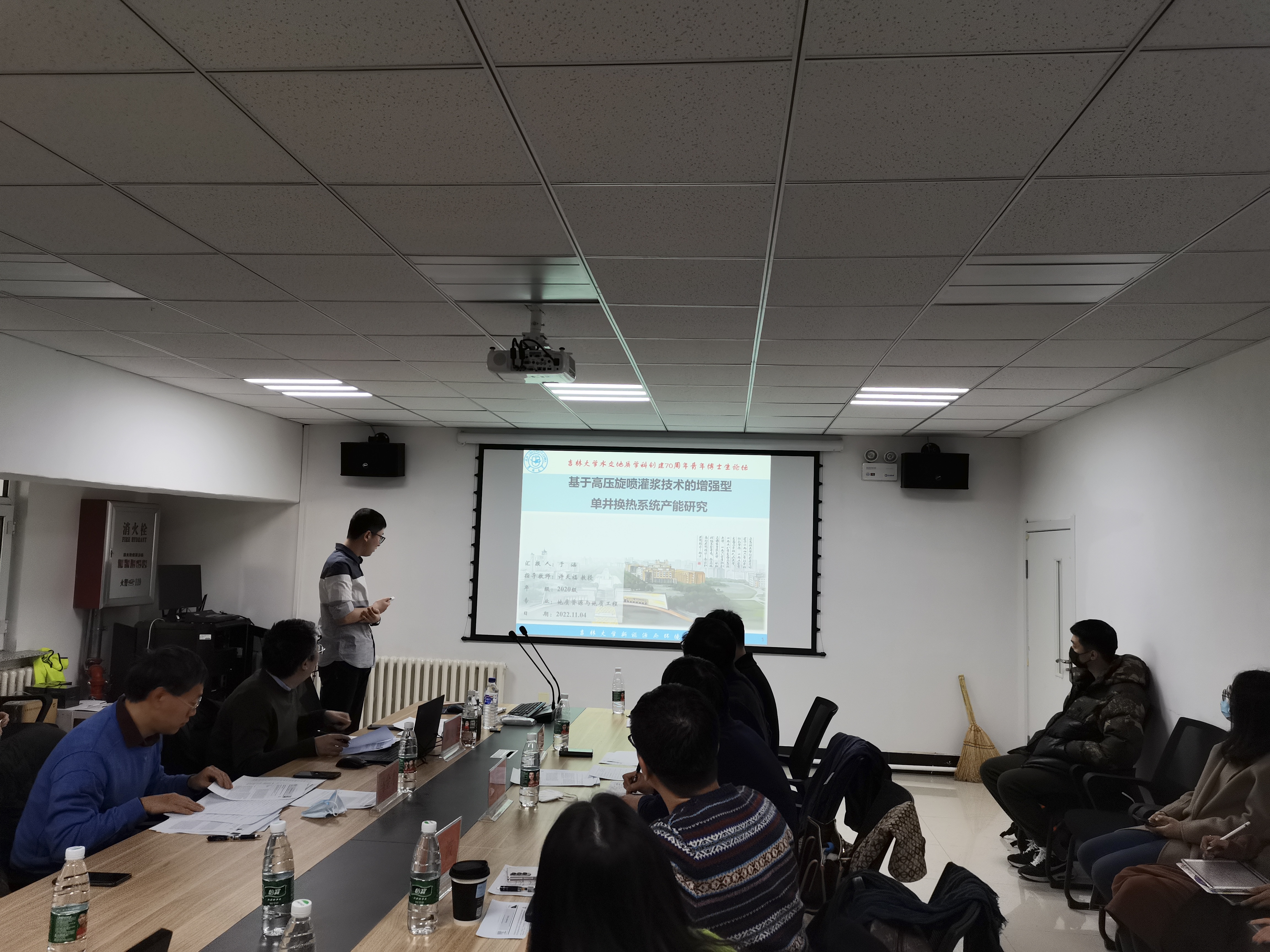 会议开始,张大奕教授对参与学术交流的各位博士研究生确认了打分规则由论文评分和宣讲评分两部分组成。参与学术交流的各位博士研究生宣讲流程为:首先就自己的科研成果进行论述宣讲,再由评委老师进行提问点评,最后指出存在的问题并评审打分。本次论坛中,师生交流探讨的研究领域涉及到电化学传感器、地热储层、单井换热系统、地下水污染源识别、纳米吸附、有机物污染物提取等多方面、多学科的内容,从实验室模型到现实环境进行了深入分析。同时评委老师针对学生研究内容中存在的问题提出了专业的指导意见及建议,并与同学们展开积极讨论。