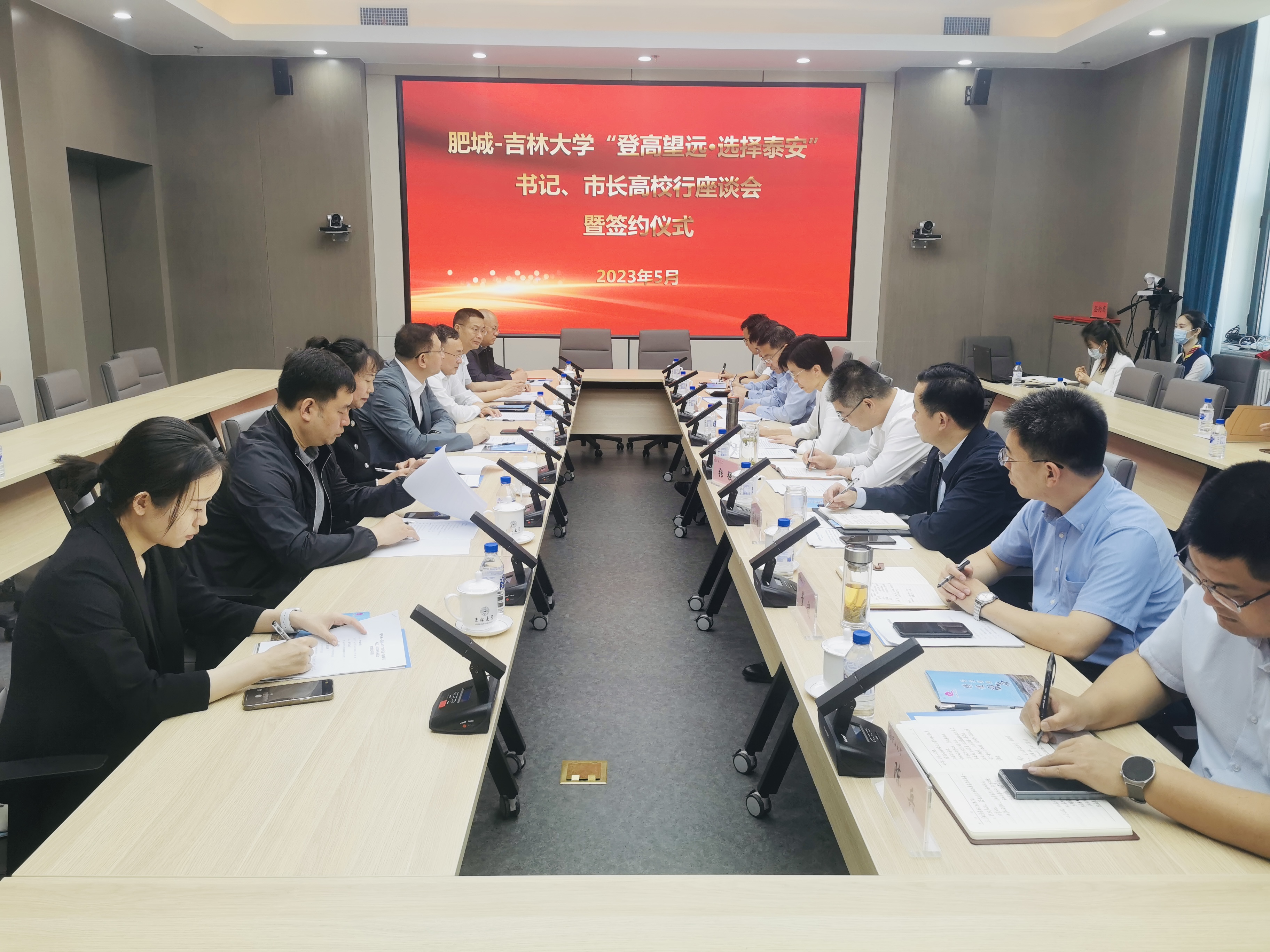 2023年5月26日,肥城市委书记张莉一行到访吉林大学,举行“登高望远·选择泰安”书记、市长高校行座谈会暨签约仪式,会议由国内合作处处长刘岩峰主持,肥城市市委书记张莉,新葡萄8883官网AMG党委书记汪祥松等参加座谈。