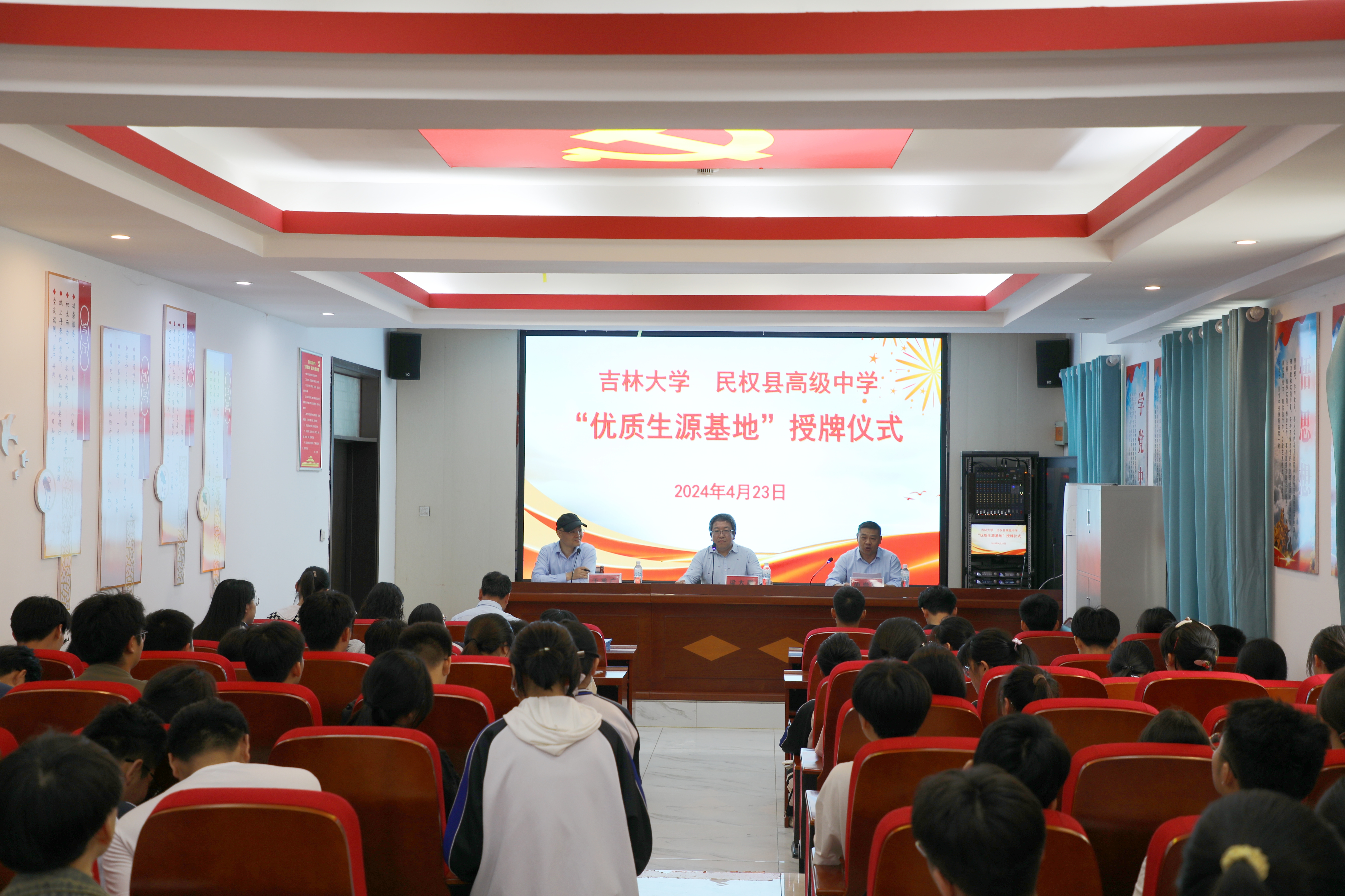 此次活动共建了5个生源基地,授牌“卓越生源基地”1个,“优秀生源基地”4个,有效搭建了“大中”协助平台。鹤壁高中始建于1958年,是河南省24所“重点中学”之一,中国顶级中学100强;2019年4月鹤壁高中成为“吉林大学优秀生源基地”。近三年,鹤壁高中共有39名学生考入我校。应鹤壁高中校领导邀请,4月23日,精讲团来到该校,进行“吉林大学卓越生源基地”授牌和招生宣讲。郑州中学、商丘市民权县高级中学、周口市扶沟县高级中学、周口市商水县第二中学近年均有多名优秀学子考入我校,经河南校友会介绍、新葡萄8883官网AMG积极对接,4所学校与我校达成共建优秀生源基地意愿,本次招生宣讲活动中,汪祥松书记、李峰院长、吴哲书记分别带队前往4所学校进行“吉林大学优秀生源基地”授牌,并与校领导交流,希望以此为契机,建立沟通平台,加深交流合作,共同为“为党育人、为国育才”做出更大的贡献。