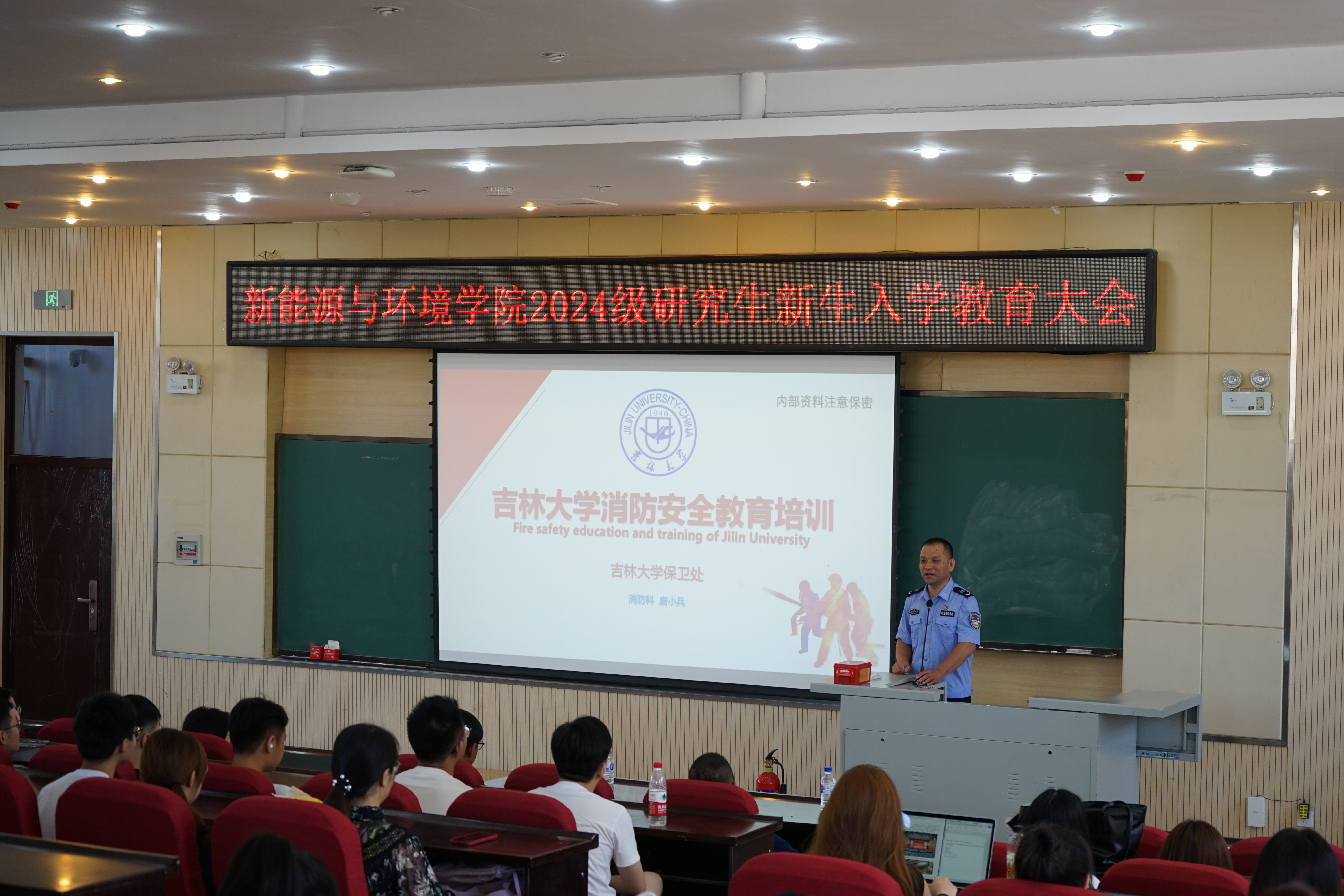 新生入学教育还邀请了吉林大学保卫处消防科科长唐小兵老师进行了消防安全教育培训,讲述了近几年高校发生的火灾实例,展示了两类常见灭火器的使用方法,提升了同学们的消防安全意识和消防安全技能。