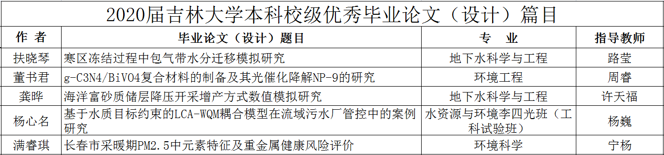 2020届吉林大学本科校级优秀毕业论文(设计)篇目