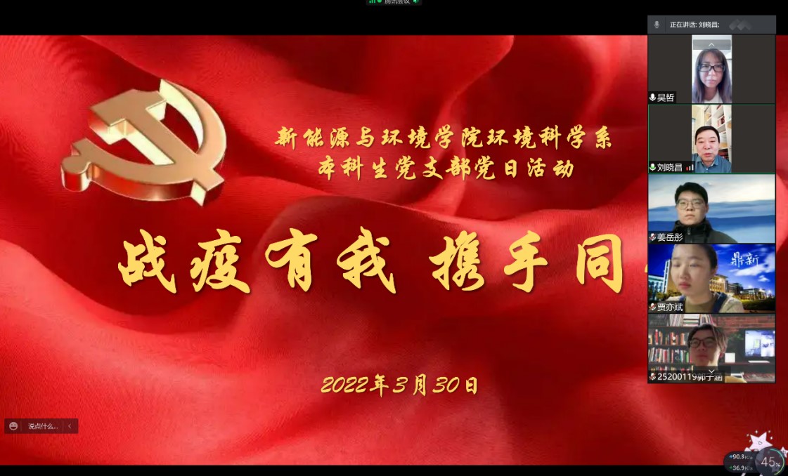 3月30日,学院环境科学系本科生党支部以“战疫有我 携手同行”为主题开展了线上党日活动,校党委巡视工作办公室主任刘晓昌,作为校部机关党员领导干部联系我支部的联系人参加了活动;同时参加活动的还有学院党委副书记兼副院长、纪委书记吴哲,以及环境科学系本科生党支部全体党员。本次线上主题党日活动由党支部书记、辅导员李薇主持。