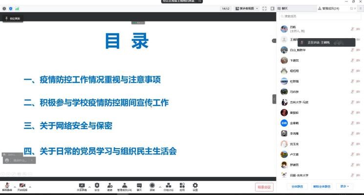会议最后要求全体党员在疫情防控期间仍要坚持利用”学习强国”和”新时代e支部”进行政治理论学习,并对本年度的支部党员民主生活会的组织形式和开展方式与全体党员进行了交流。本次会议的召开,对基层党组织在关键时期发挥战斗堡垒作用和党员的先锋模范作用起到积极推动作用。