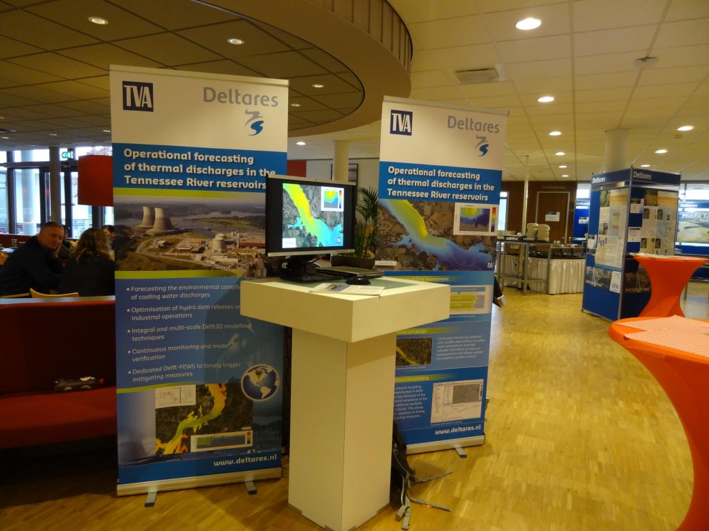 两天的User Days共有来自全球的几十位专家学者就Delft 3D模型的水流模拟、水动力学模拟、水灾害预警等多方面内容做了精彩的报告,并围绕报告内容进行了深入的交流与讨论。会议茶歇期间,会议大厅还展示了参加会议的其他机构利用Delft 3D做出的产品Demo,访学团成员对展示的Demo也表现出了浓厚的兴趣,纷纷驻足讨论。访学团团长李鸿雁教授还积极向参会专家介绍了访学团的目的、人员组成及主要行程,并邀请与会专家来我校访问开展学术交流活动。