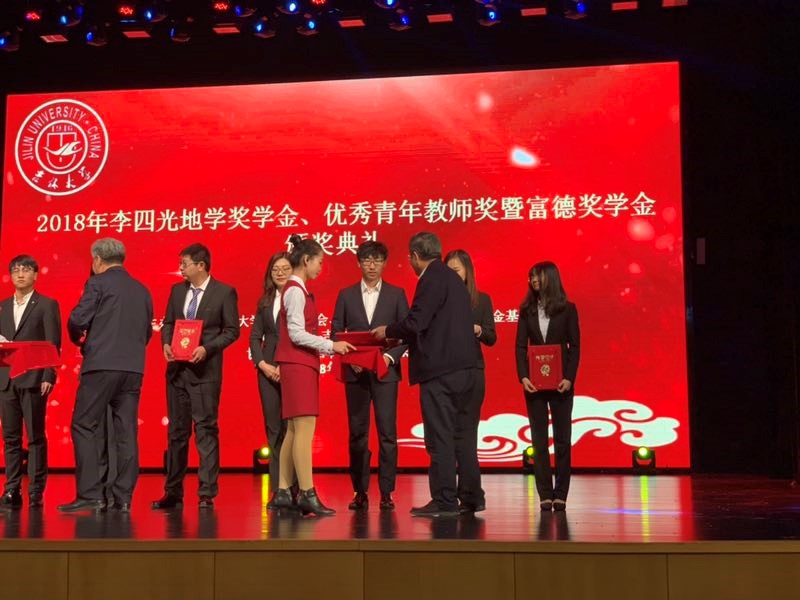 12月8日地学部在东荣报告厅隆重举行“吉林大学2018年李四光地学奖学金、优秀青年教师奖暨富德奖学金颁奖典礼”。“李四光地学奖学金”是由原长春地质学院北京校友会发起,原长春地质学院校友、吉林大学地学部校友、师生以及企业家朋友慷慨捐资设立的。随着地学师生一批重大科技创新成果的不断产出,为激发地学师生学习、创新热情,特别是油页岩的开发、利用,富德集团向地学部捐资设立了“富德奖学金基金”。去年9月,经学校领导和李四光地学奖学金基金会商议,将富德奖学金基金合并到李四光地学奖学金基金会管理,一起评奖和表彰奖励。两个基金合并管理后,李四光地学奖学金基金本金超过2100万元。