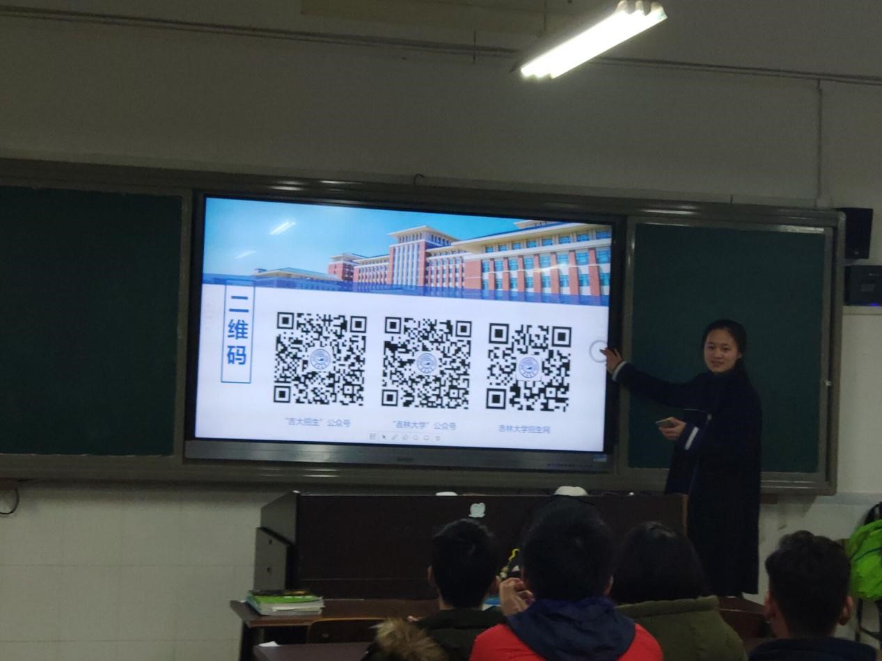 宣讲当天,宣讲小队的成员将学校2018年的专业招生目录分发给到场的学弟学妹,按以上顺序分板块对吉林大学进行了介绍,展示与讲解之后,他们留给了到场同学的提问时间,将学弟学妹们关于吉林大学的疑问进行一一解答,回答了同学们的一些关于学校,专业方面的问题,增进了同学们对吉林大学的了解。同时,为了方便一些有兴趣报考吉林大学的同学更好的了解学校,宣讲小队留下了联系方式,以便解决同学们后续有关学校方面的问题。