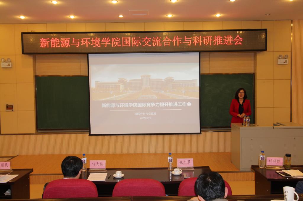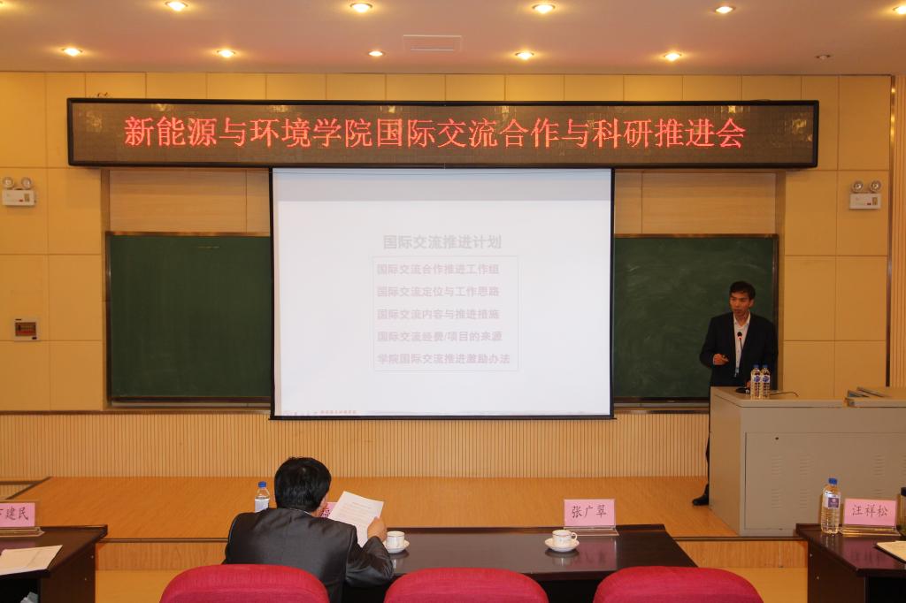 推进会由学院党委书记汪祥松主持。首先,张广翠处长做了“新葡萄8883官网AMG国际竞争力提升推进工作”的报告,报告首先介绍了“世界一流大学”的国际化因素、吉林大学国际化水平现状、新葡萄8883官网AMG国际化战略目标及现状,并为新能源学院未来国际化发展工作提出了宝贵建议。张处长还对关于新葡萄8883官网AMG学生国际竞争力提升计划进行了深入细致的分析并强调了关于学生学业规划的重要性。新葡萄8883官网AMG负责外事工作的董军副院长向参会教师介绍了学院国际交流的推进计划、教师开展国际交流合作的经费来源、以及学院对国际交流工作推进的激励方法。同时,董军副院长对2018年的科研工作进行了总结并提出今年的推进计划。